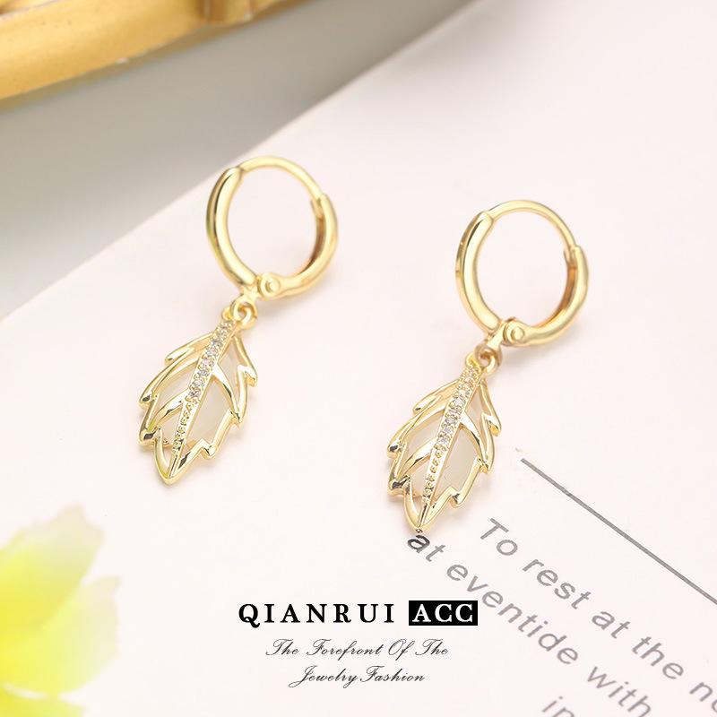 Aretes de Hoja de Metal, Aretes de Diseño Nicho Nuevos y Modernos, Aretes Exquisitos y a la Moda con un Estilo de Planta de Lujo Ligero
