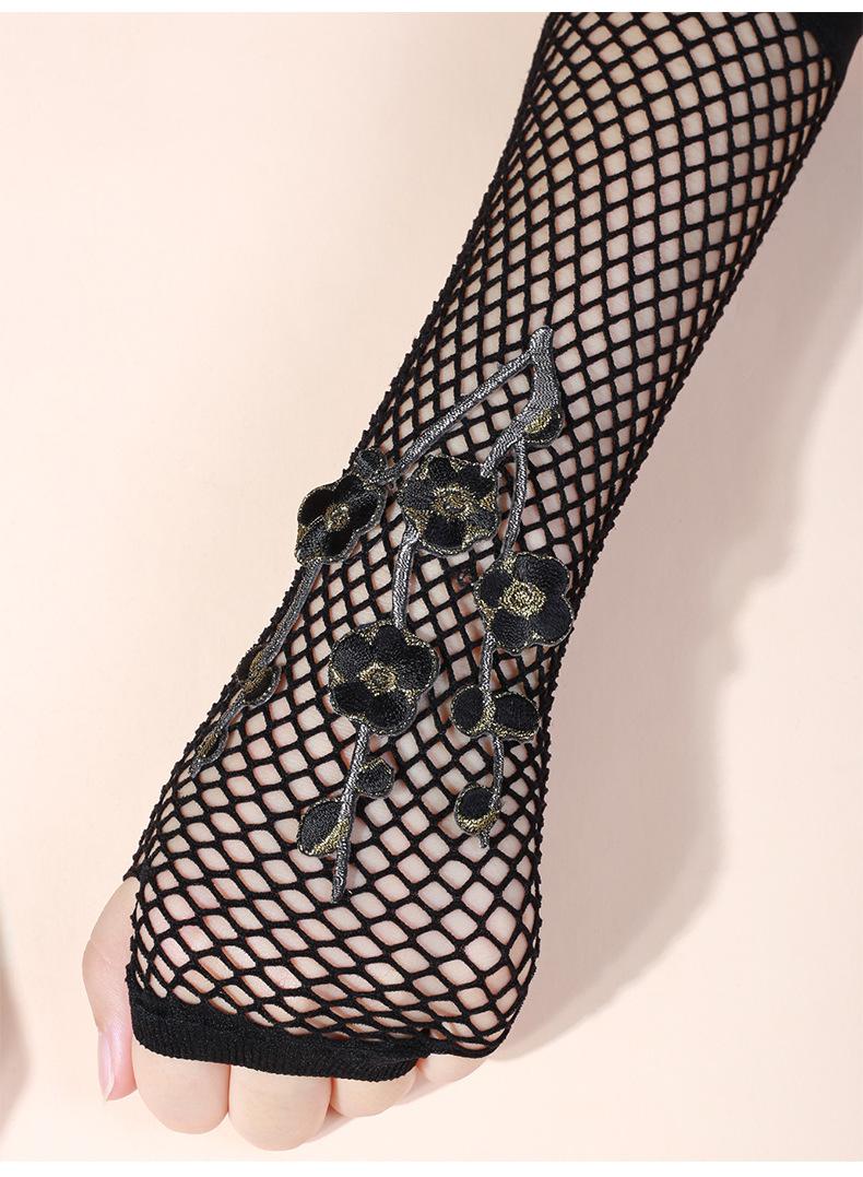 Guantes Largos, Calentadores de Brazo de Red Negros Tie-Dye, Sin Dedos, Primavera y Otoño, Adorno de Flor de Ciruelo, Decorativos, Calentadores de Brazo Personalizados para Mujer