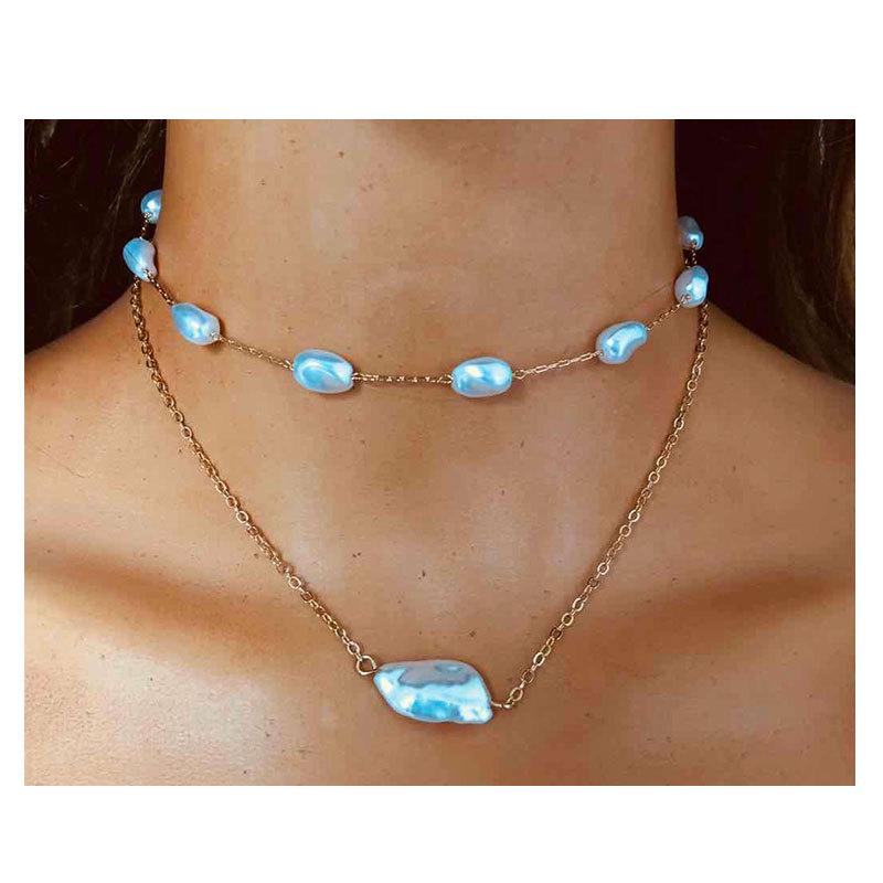 Collar con colgante de perla en forma de cadena de metal con personalidad sencilla de joyería transfronteriza europea y americana para mujer 14460