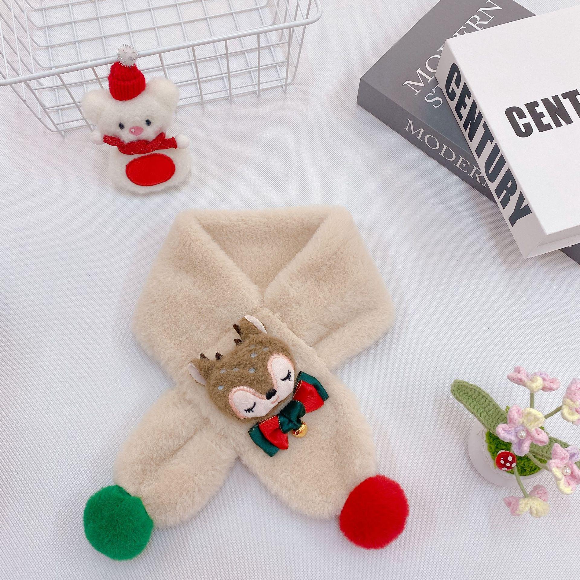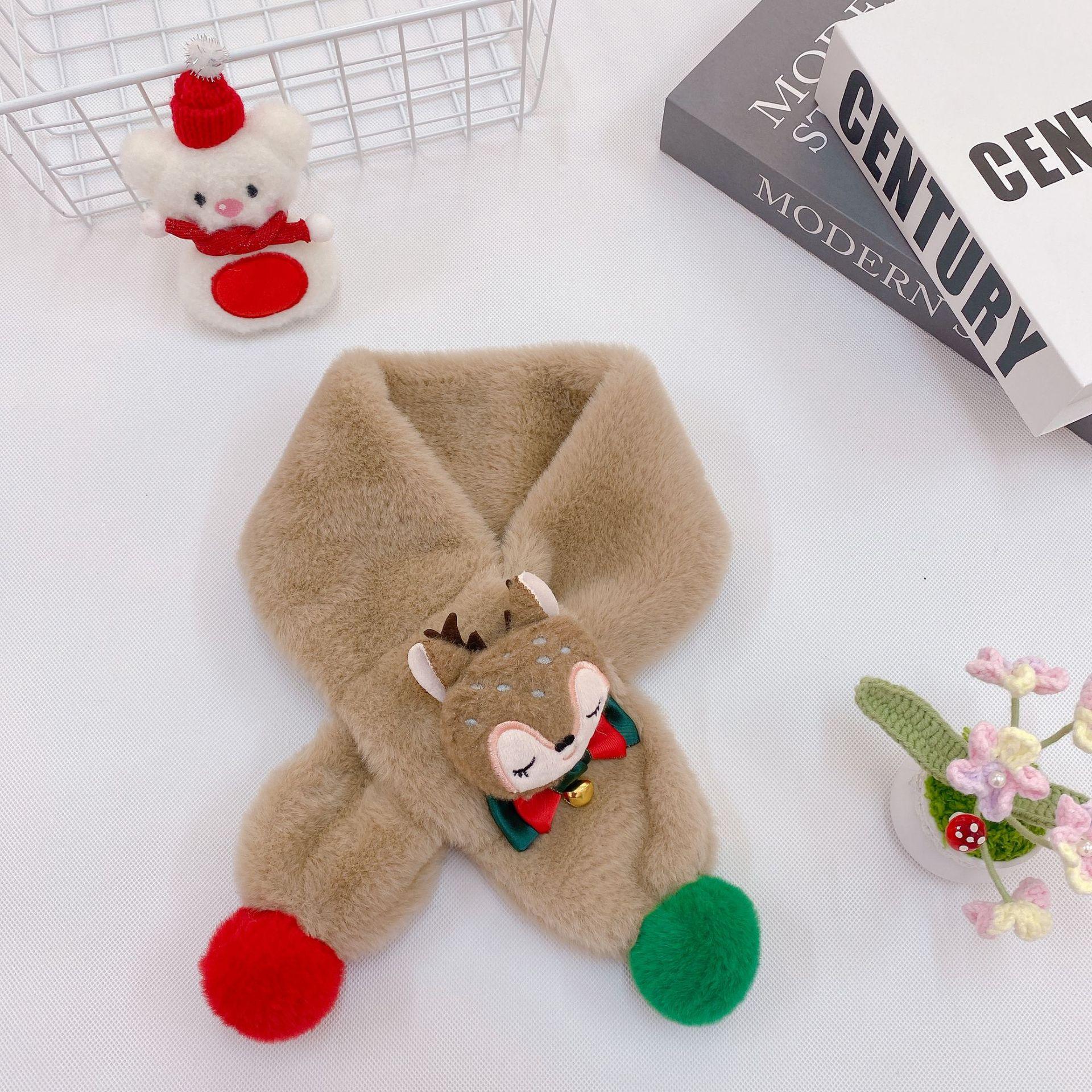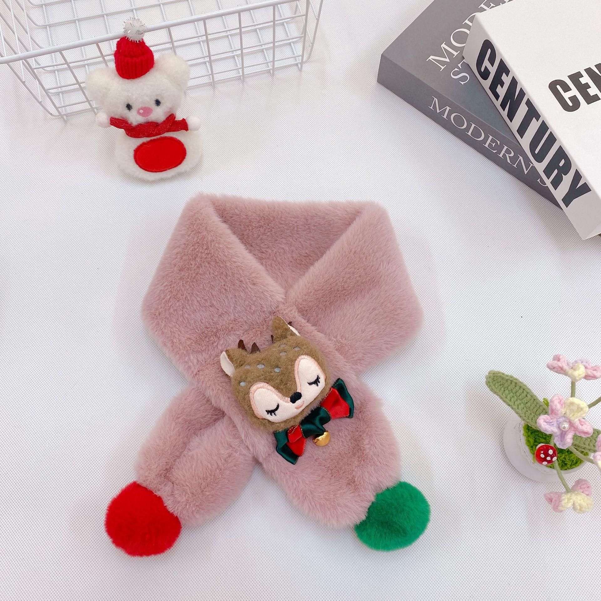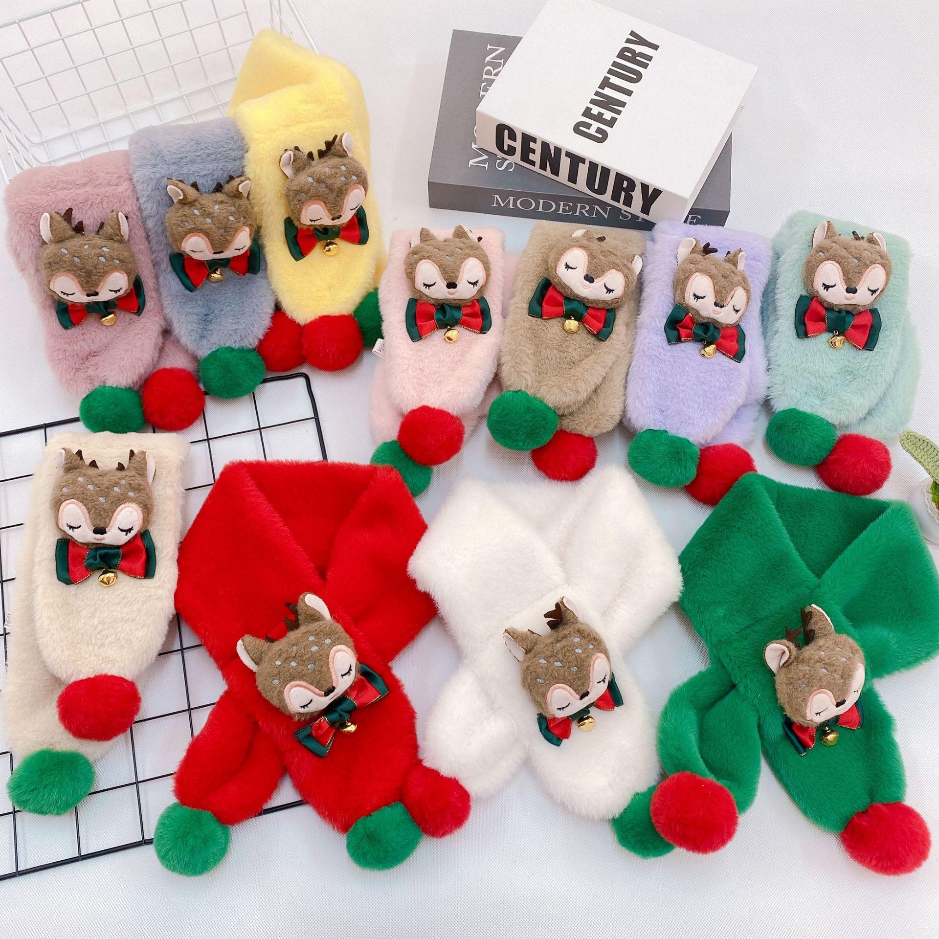 Bufanda nueva para niños de Otoño e Invierno, bufanda de felpa navideña cálida de imitación de piel de conejo, bufanda linda de dibujos animados para niños y niñas