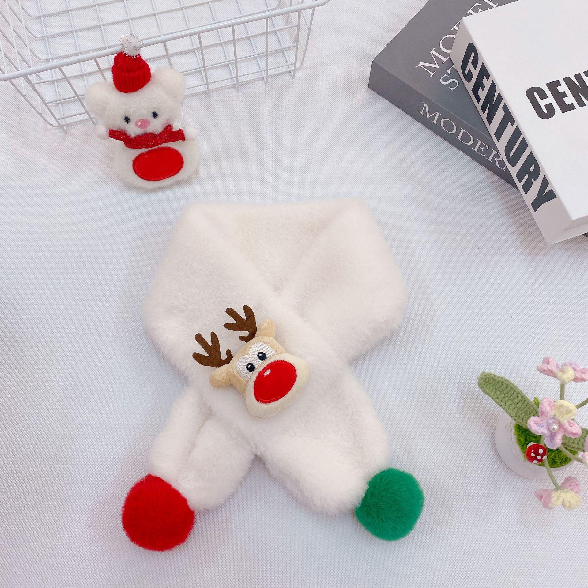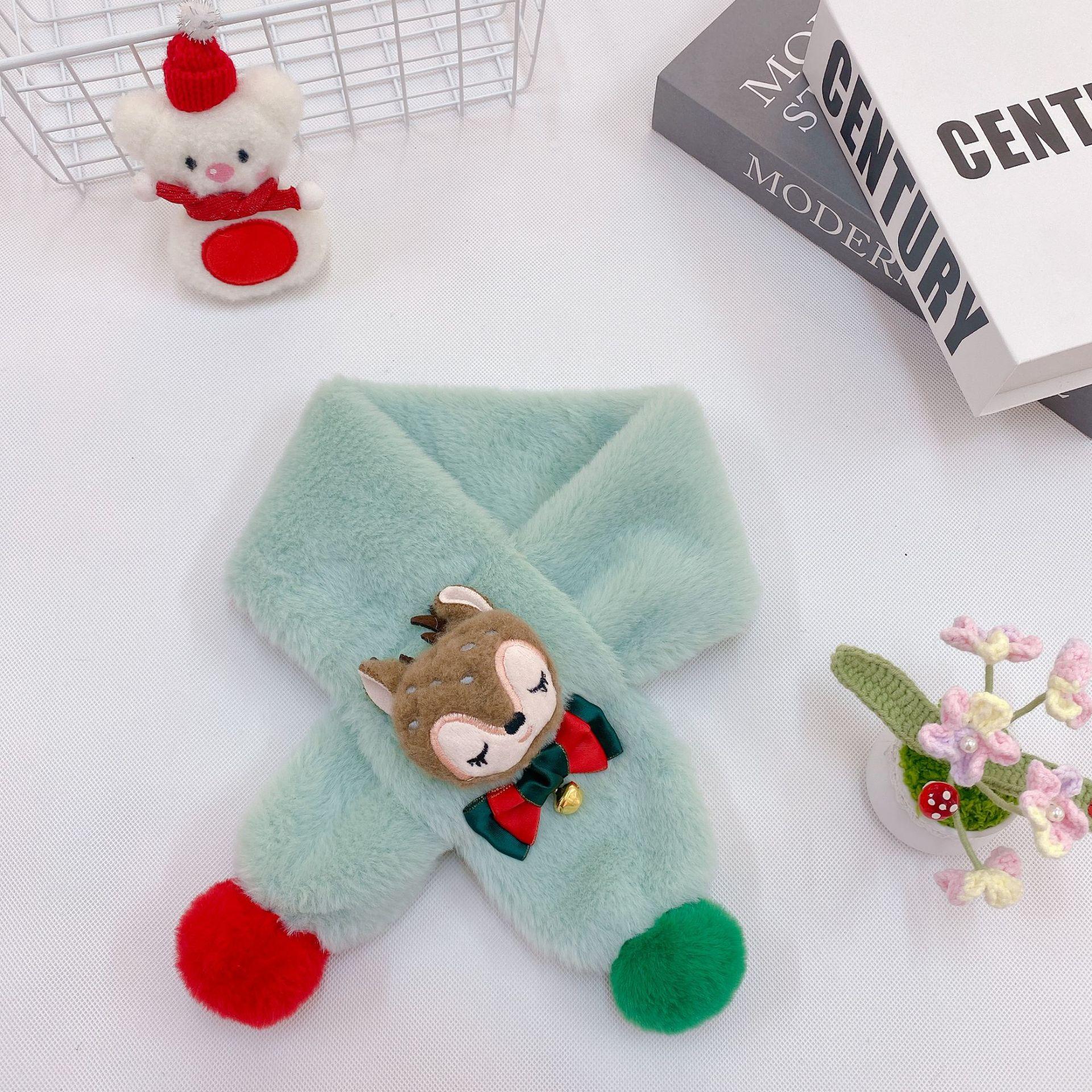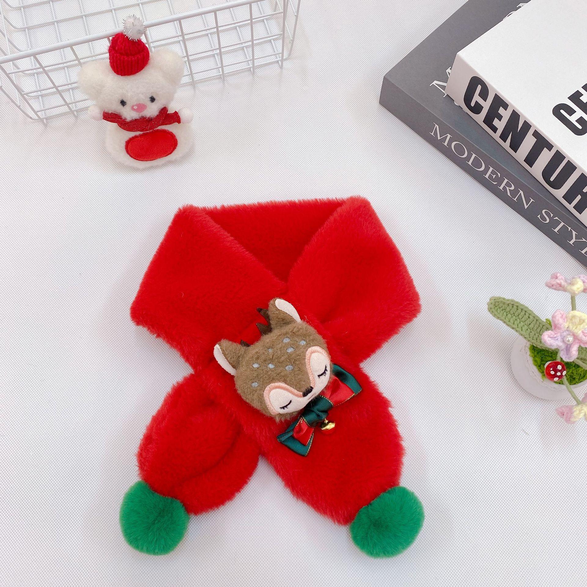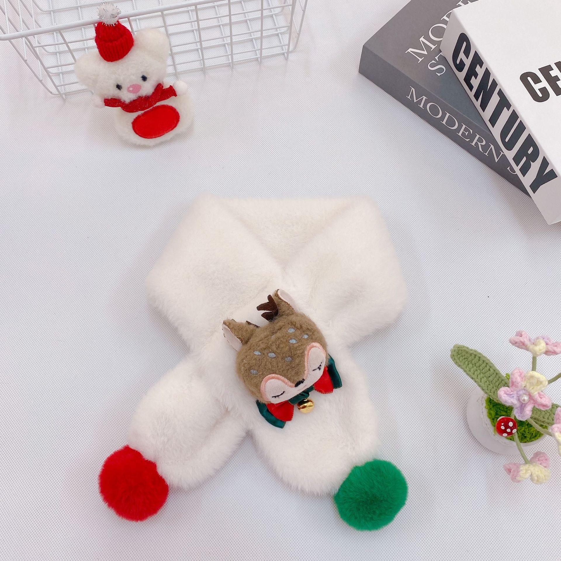 Bufanda nueva para niños de Otoño e Invierno, bufanda de felpa navideña cálida de imitación de piel de conejo, bufanda linda de dibujos animados para niños y niñas