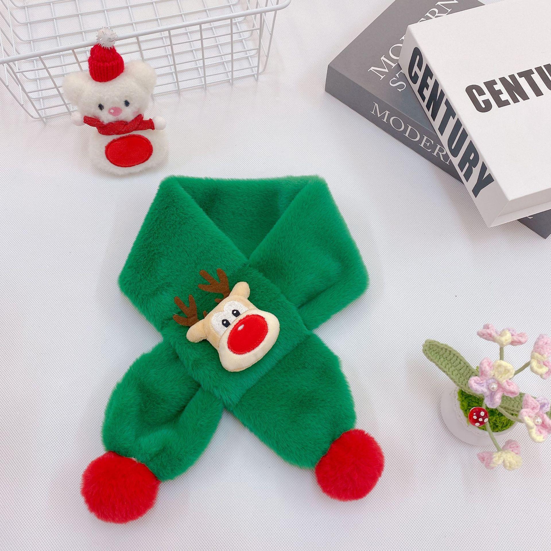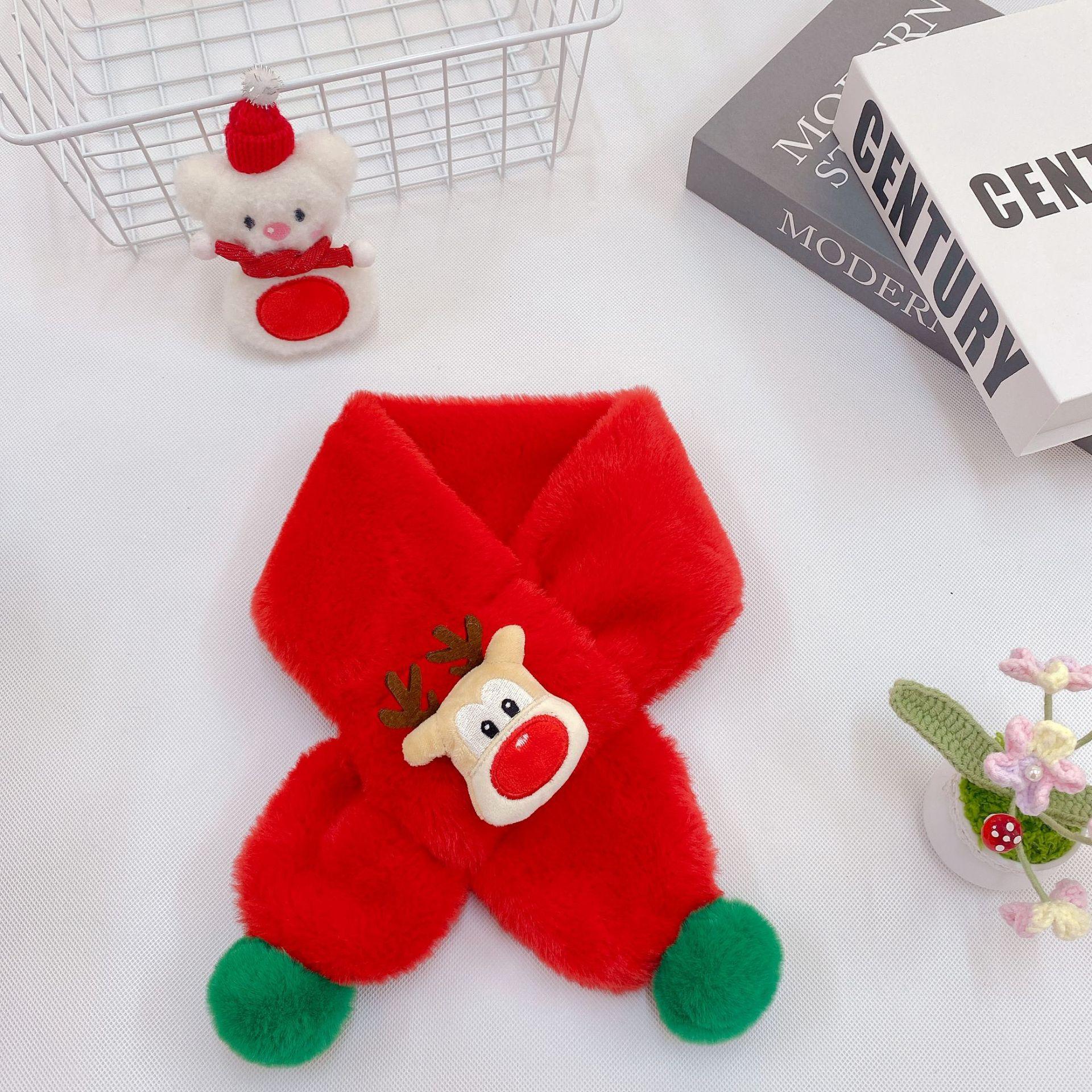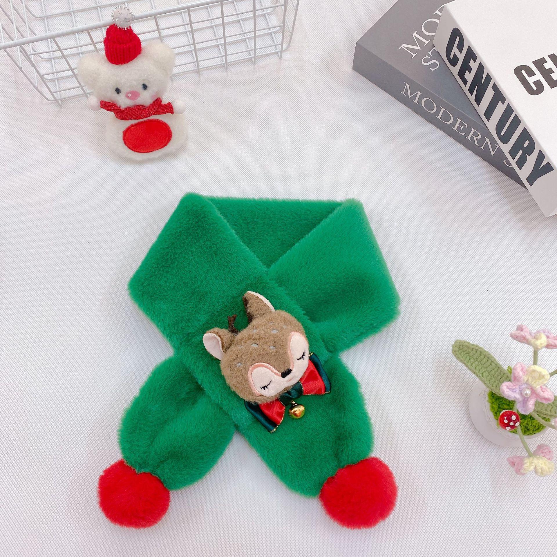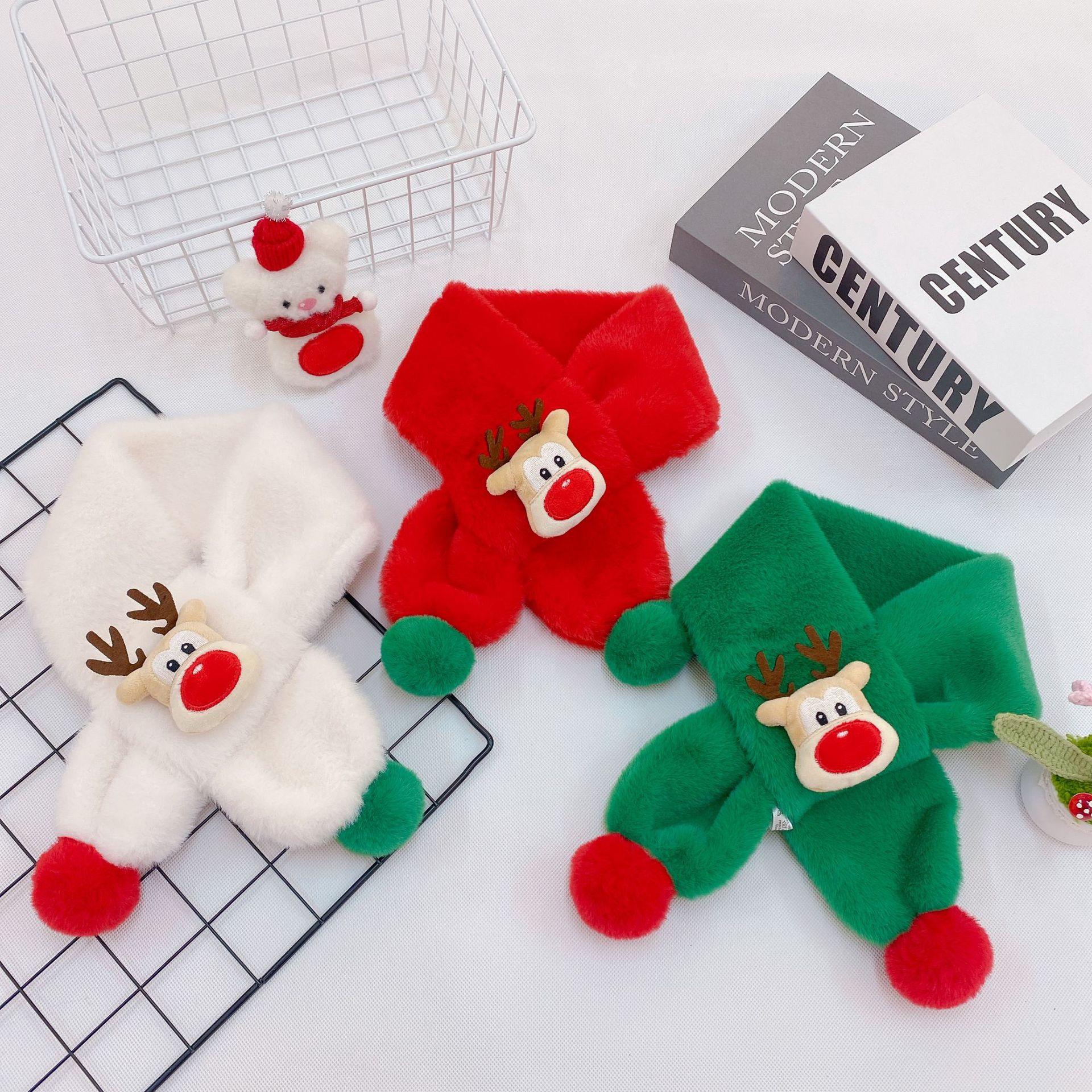 Bufanda nueva para niños de Otoño e Invierno, bufanda de felpa navideña cálida de imitación de piel de conejo, bufanda linda de dibujos animados para niños y niñas