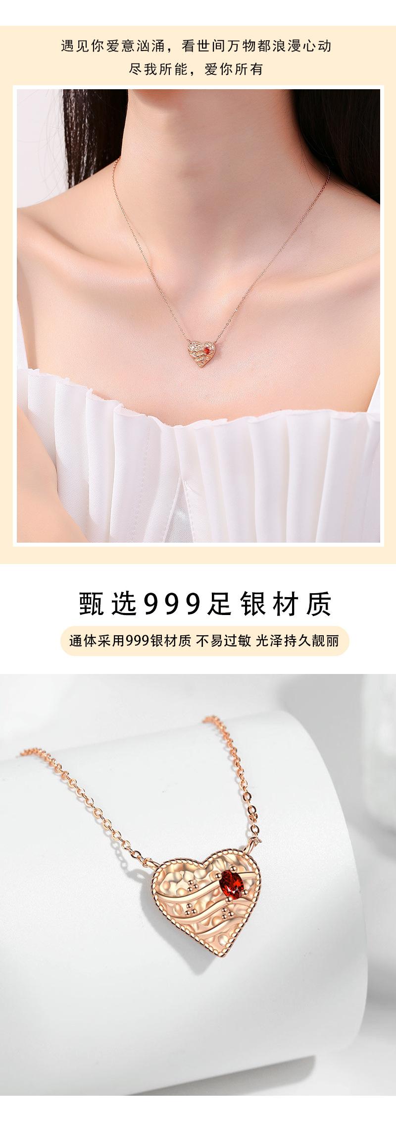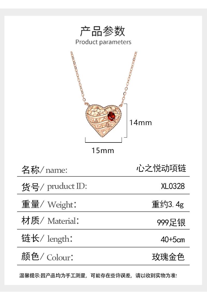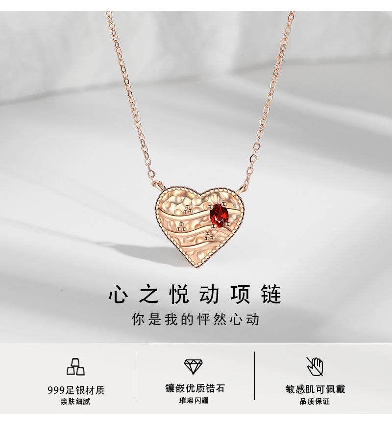 Collar Yuedong con forma de corazón original, nuevo, retro, simple, de plata de ley 999, con colgante de amor, textura de temperamento, estilo europeo y americano.