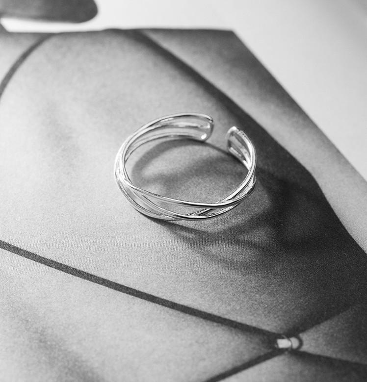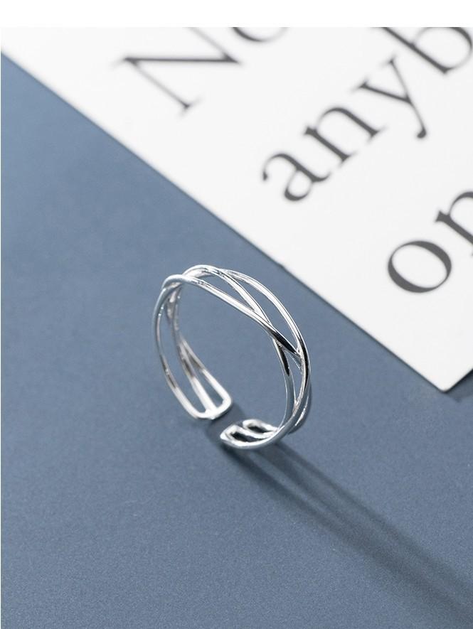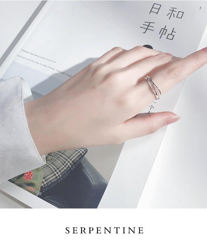 Moda Coreana Anillo de Apertura Cruzada para Mujer Anillo de Dedo Índice de Línea Hueca de Personalidad Simple Pequeños Accesorios de Celebridad de Internet
