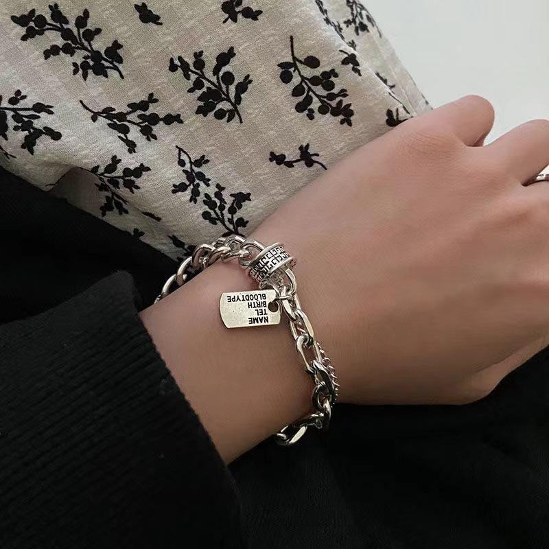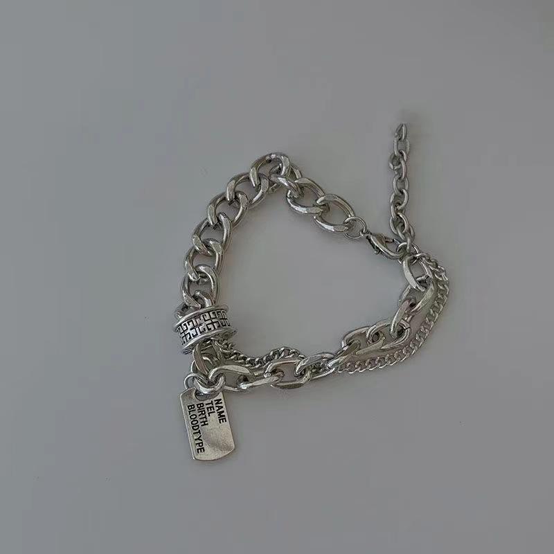 Pulsera Hip-Hop Trendy Cool Cuadrada de Marca Vieja para Mujer Ins Simple Nicho Estilo Frío Diseño Personalizado Doble Capa Joyería de Mano para Hombre