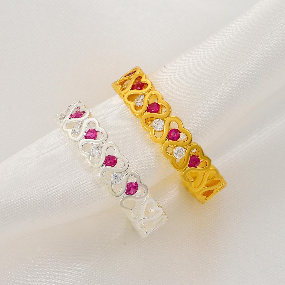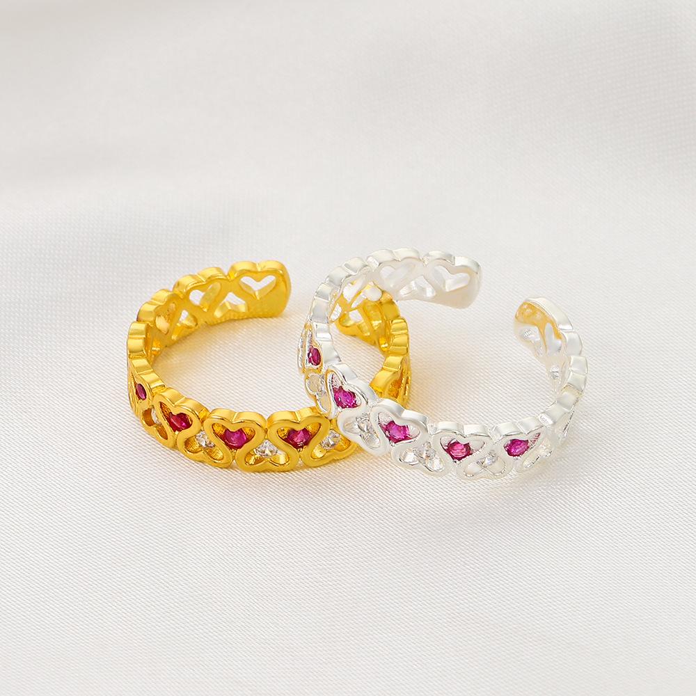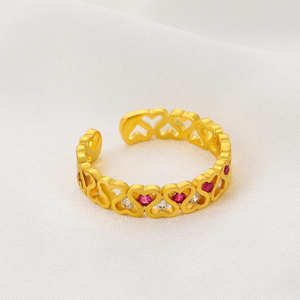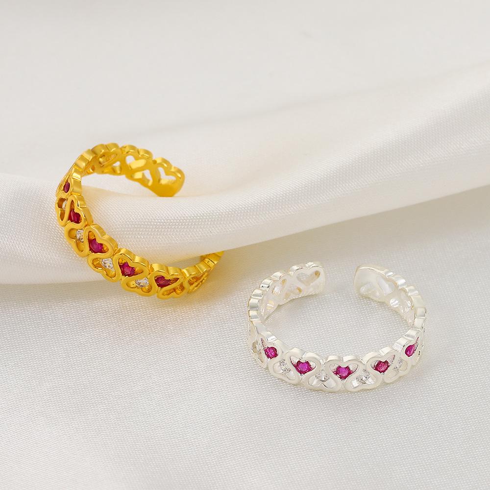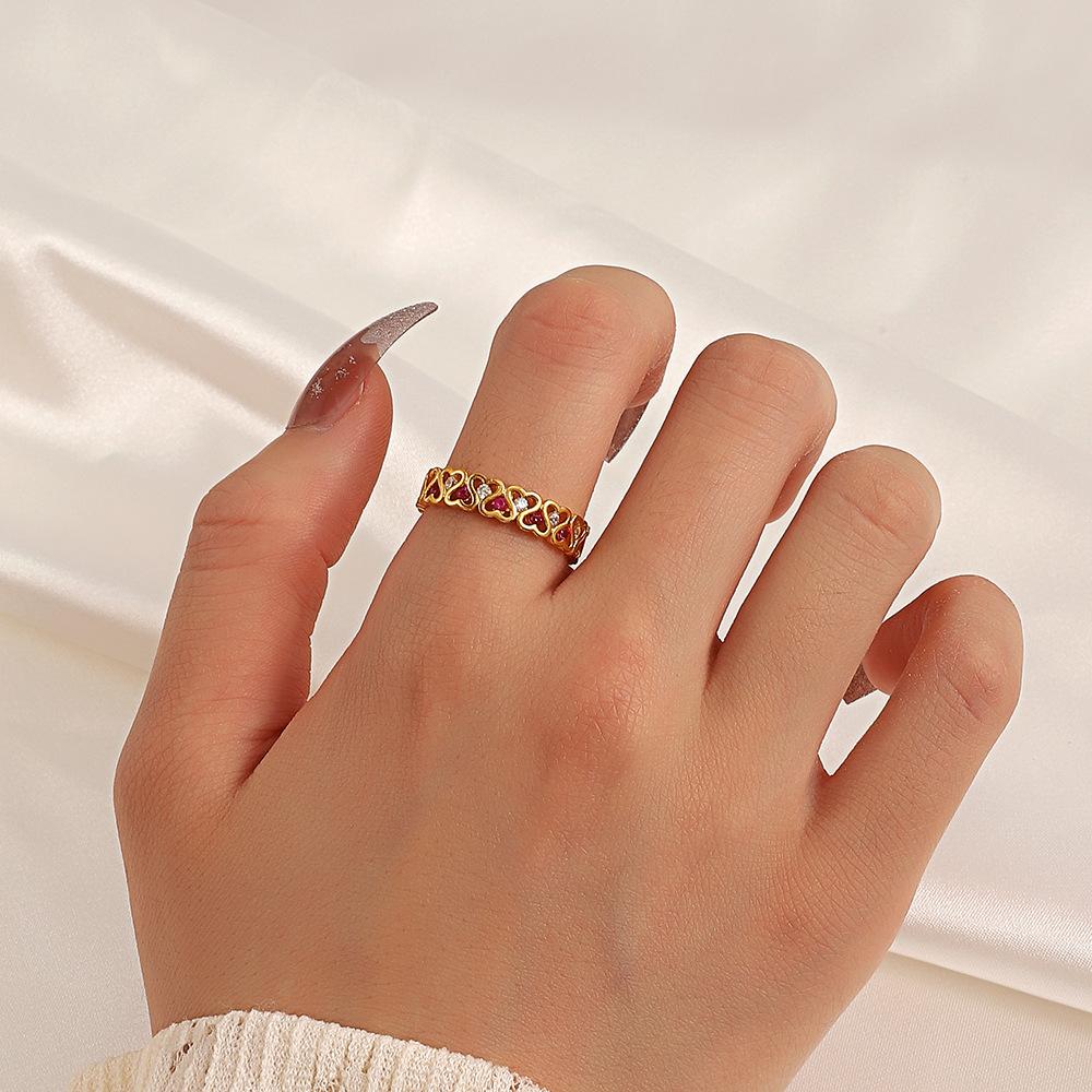 Anillo de Nuevo Amor Europeo y Americano ins Moda Nicho Hueco Micro-incrustado Zircón Corazón Geométrico Anillo de Dedo Anillo de Dedo de Comida