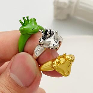 Anillo de rana de metal nuevo personalizado transfronterizo europeo y americano nicho simple lindo forma de rana corona