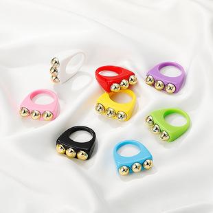 Anillo cuadrado nuevo europeo y americano de resina ins verano anillo acrílico geométrico personalidad color caramelo anillo de articulación femenino