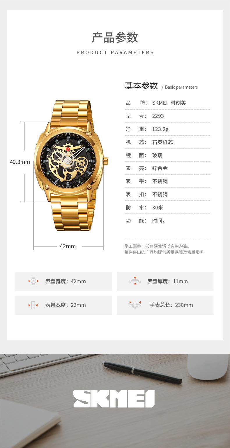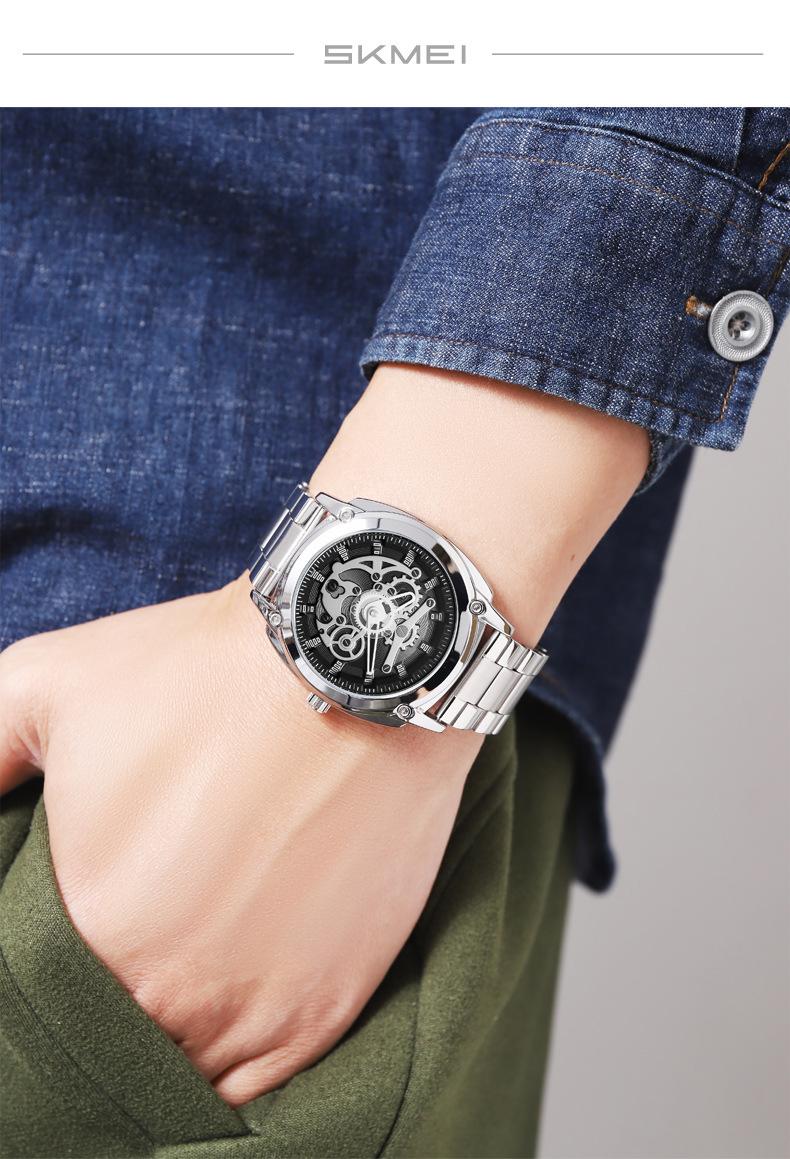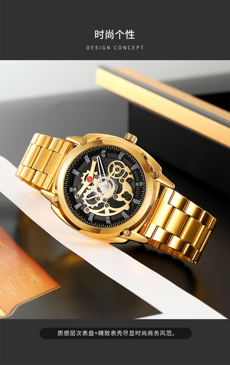 Reloj de hombre Time Beauty Factory con cabello liso, estilo mecánico, esfera, resistente al agua, de cuarzo, para uso diario.