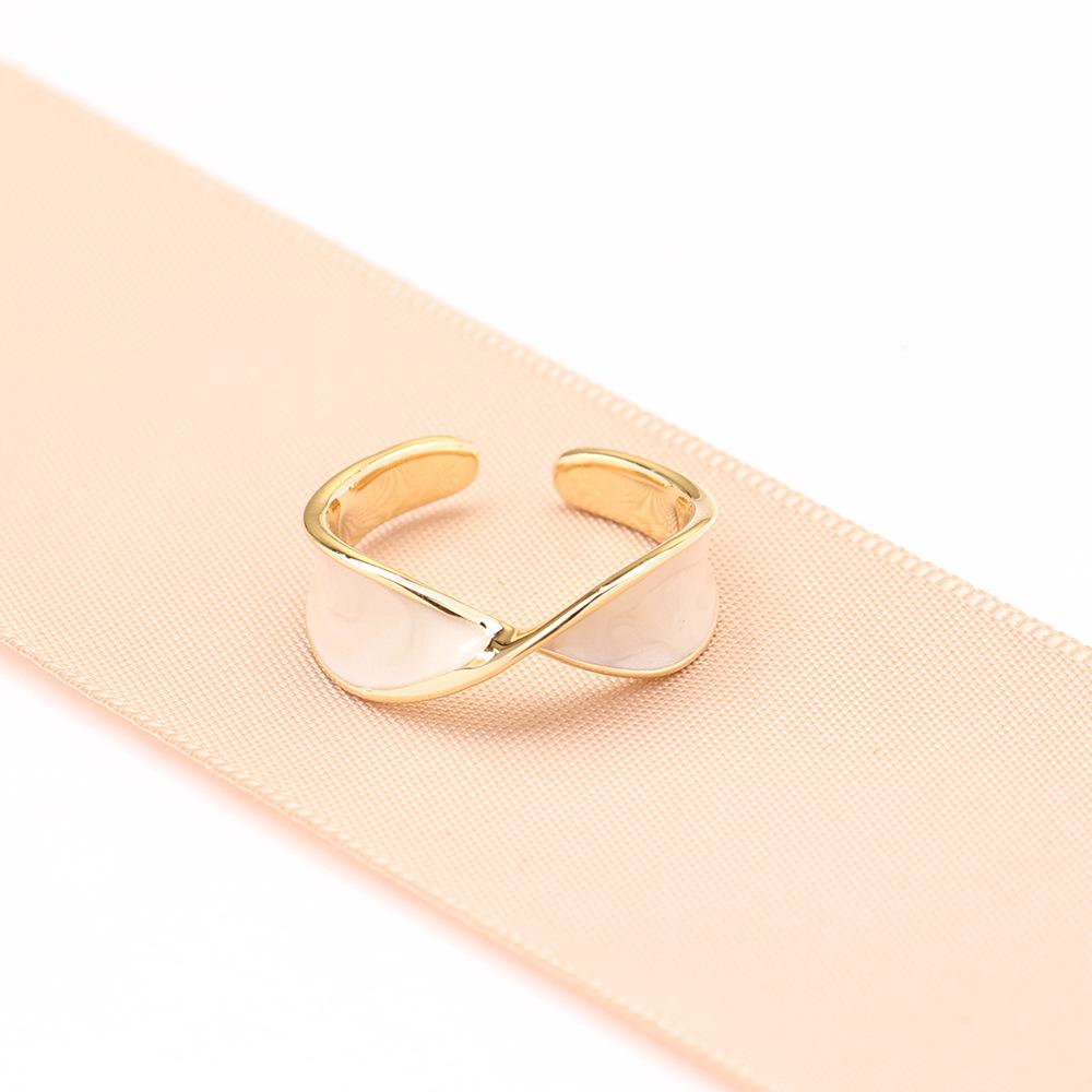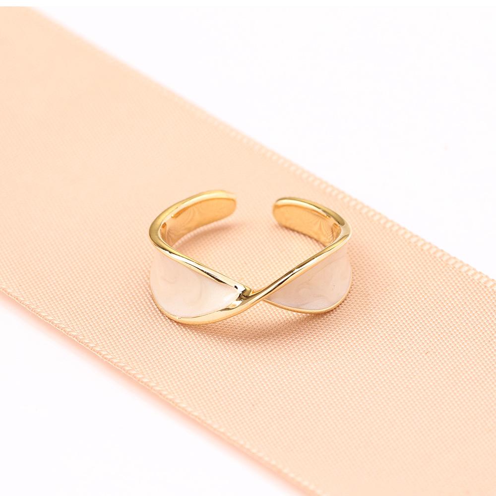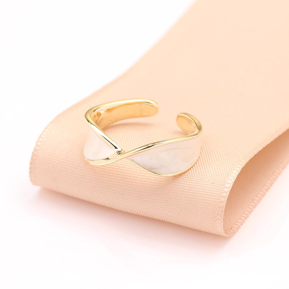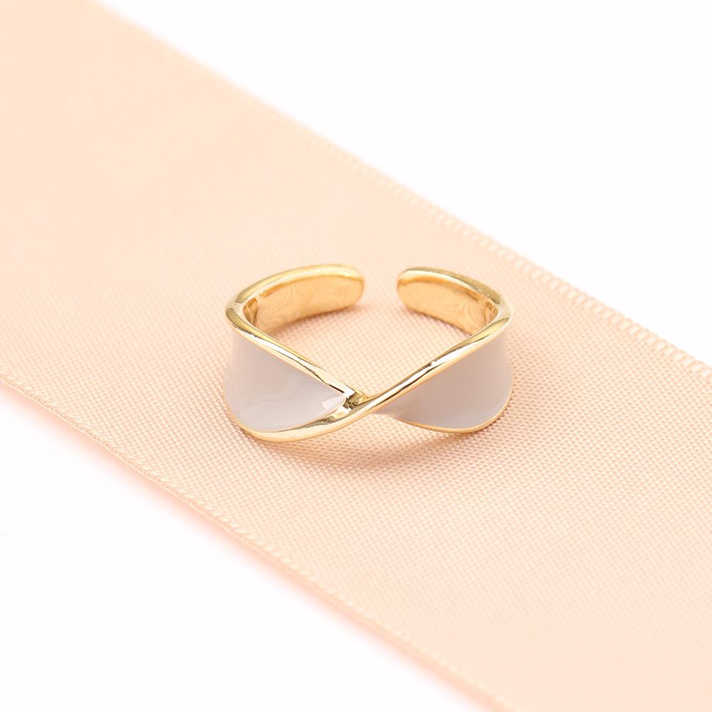 Anillo cruzado bicolor estilo gota dulce coreano chapado en oro abierto de tamaño ajustable para el dedo índice para mujer