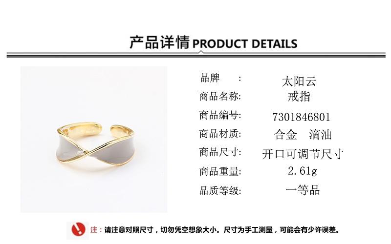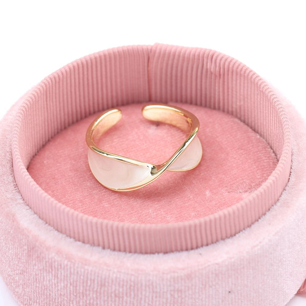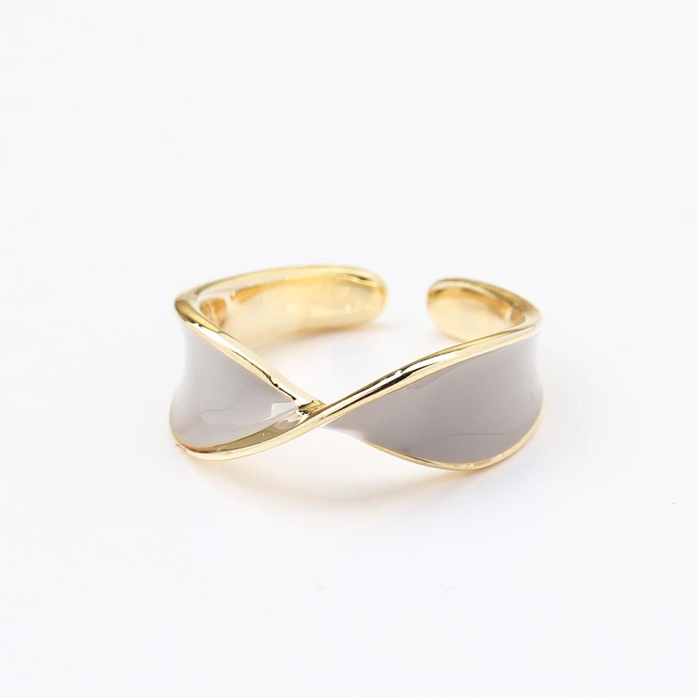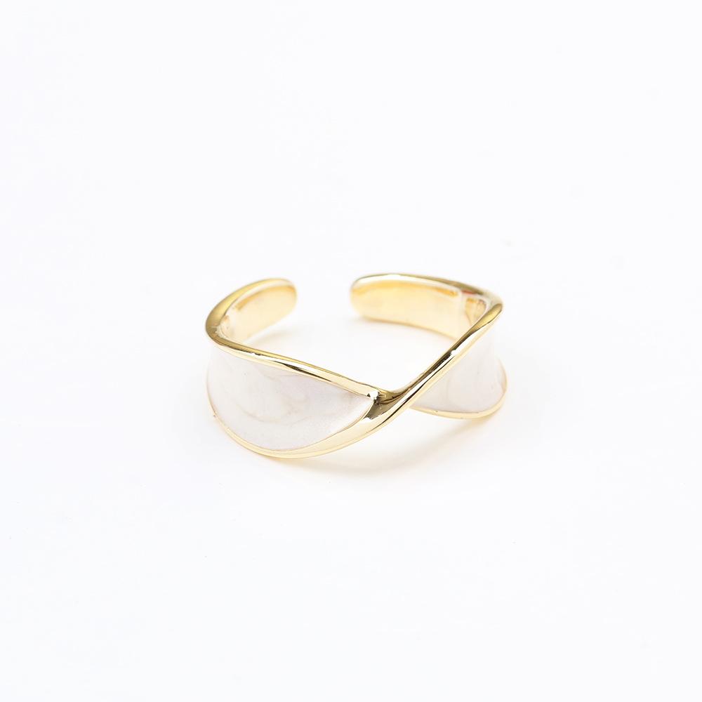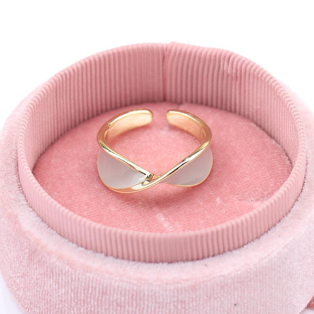 Anillo cruzado bicolor estilo gota dulce coreano chapado en oro abierto de tamaño ajustable para el dedo índice para mujer