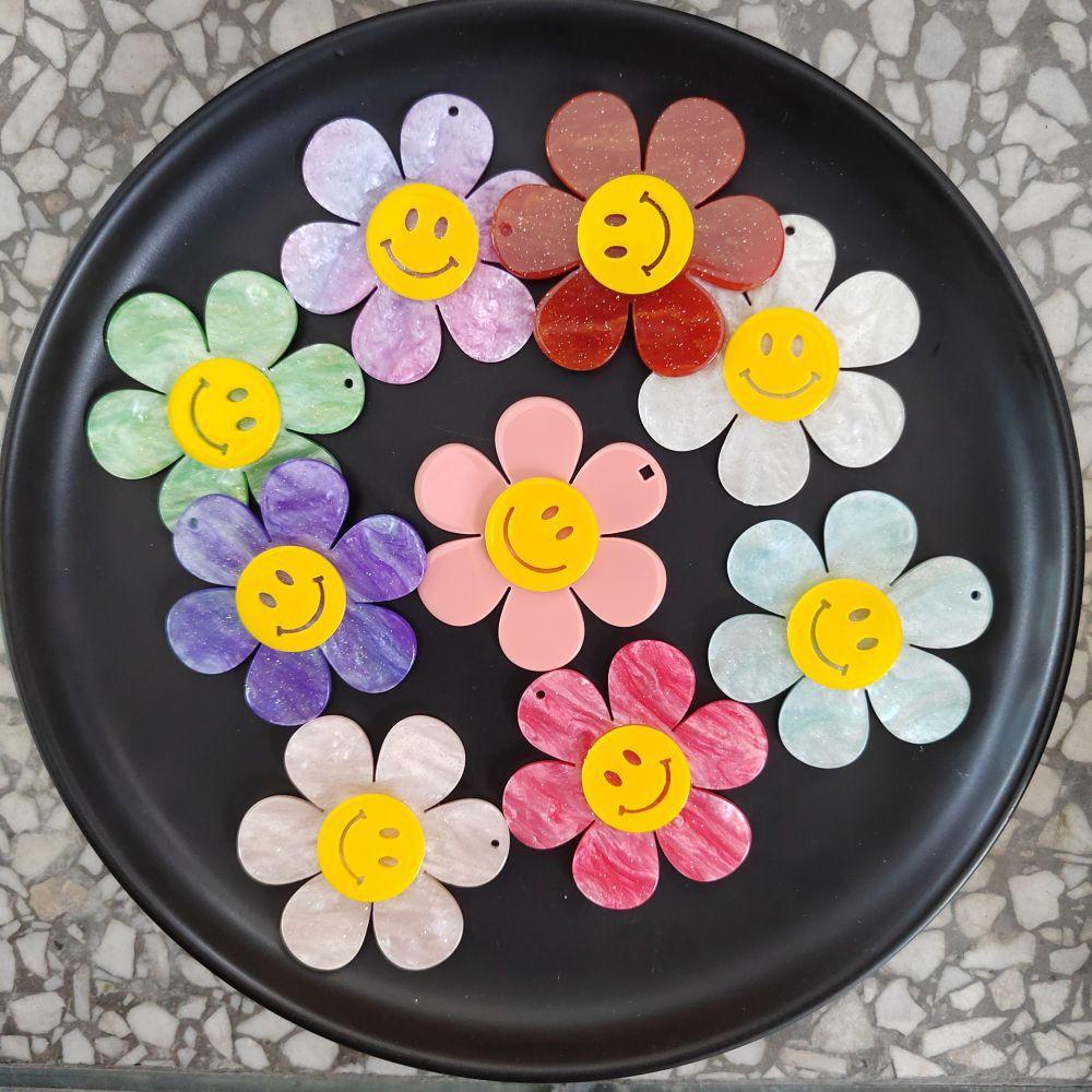 Horquilla casera con efecto de concha, cara sonriente de girasol, crema de gel, accesorios de resina para joyería, funda para teléfono móvil