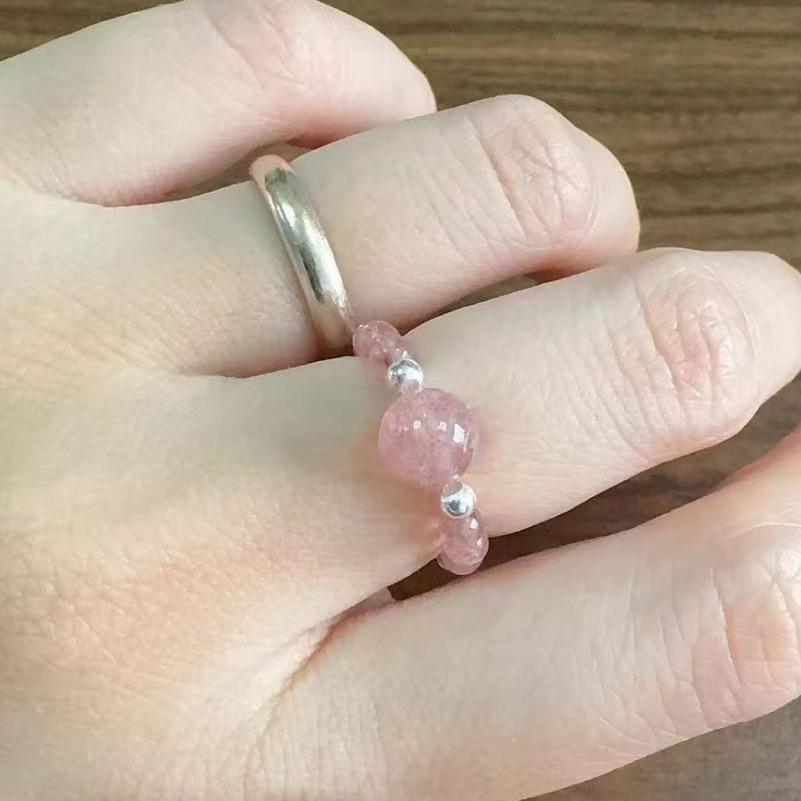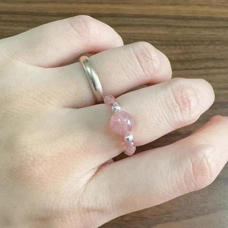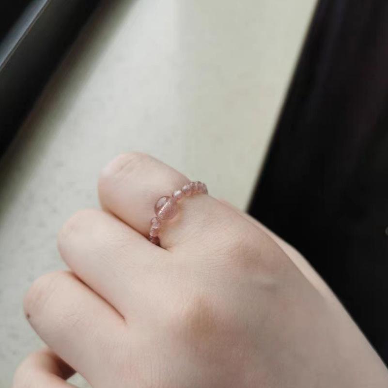 Anillo elástico con cuentas de cristal de fresa de 4 mm, estilo chino, para hombre y mujer, venta al por mayor