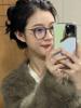 Gafas ultraligeras de color marrón frío para mujer, de alta gama, con montura grande, cara lisa, montura pequeña ajustable para miopía, antiluz azul