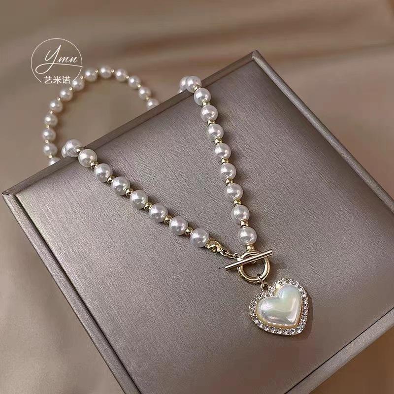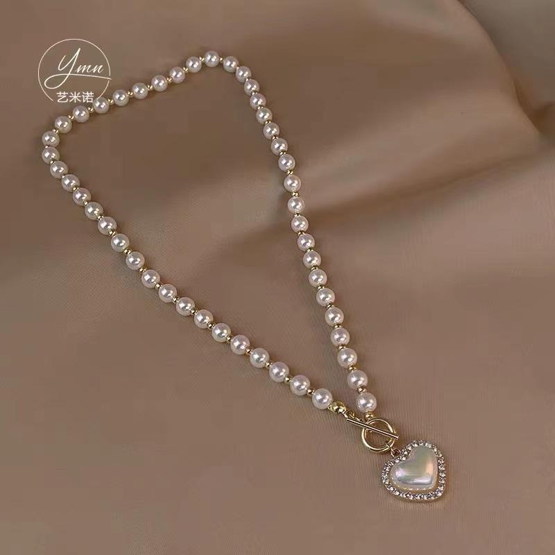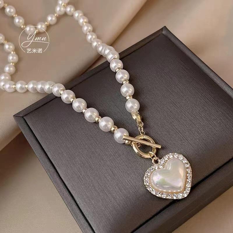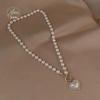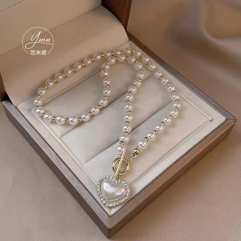 Collar de perlas de amor chapado en oro auténtico para mujer, diseño de nicho, cadena de collar de lujo ligera, nuevo collar con colgante, accesorios