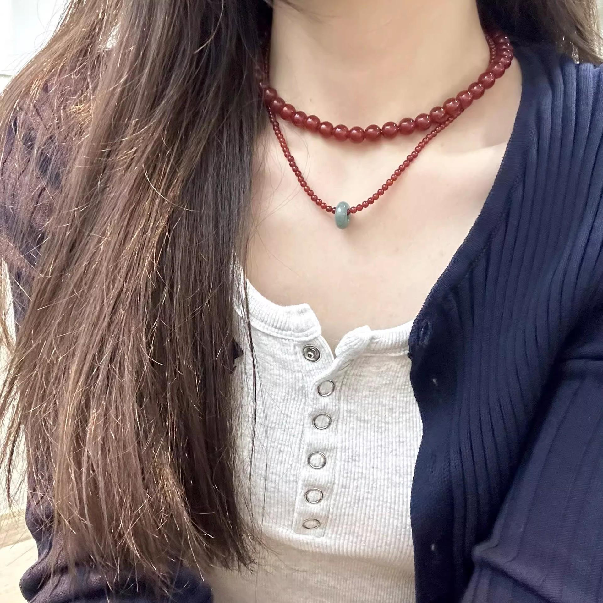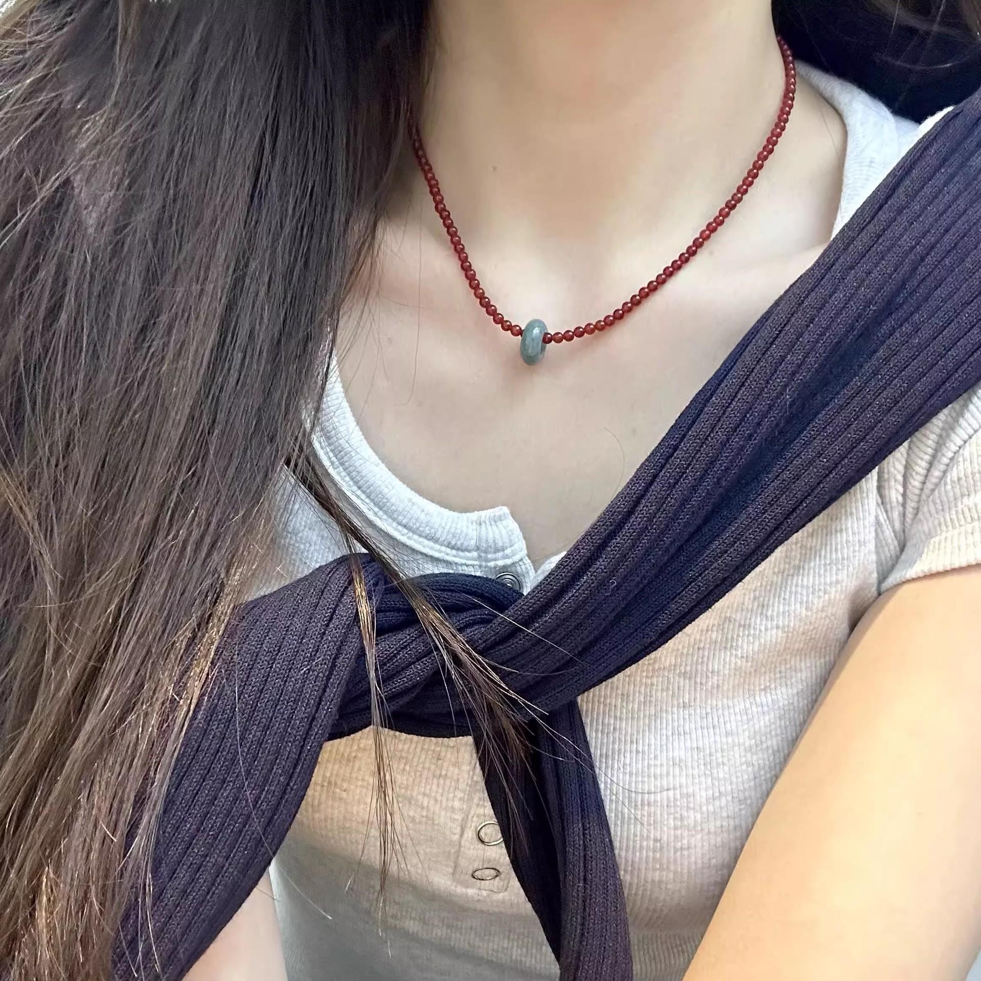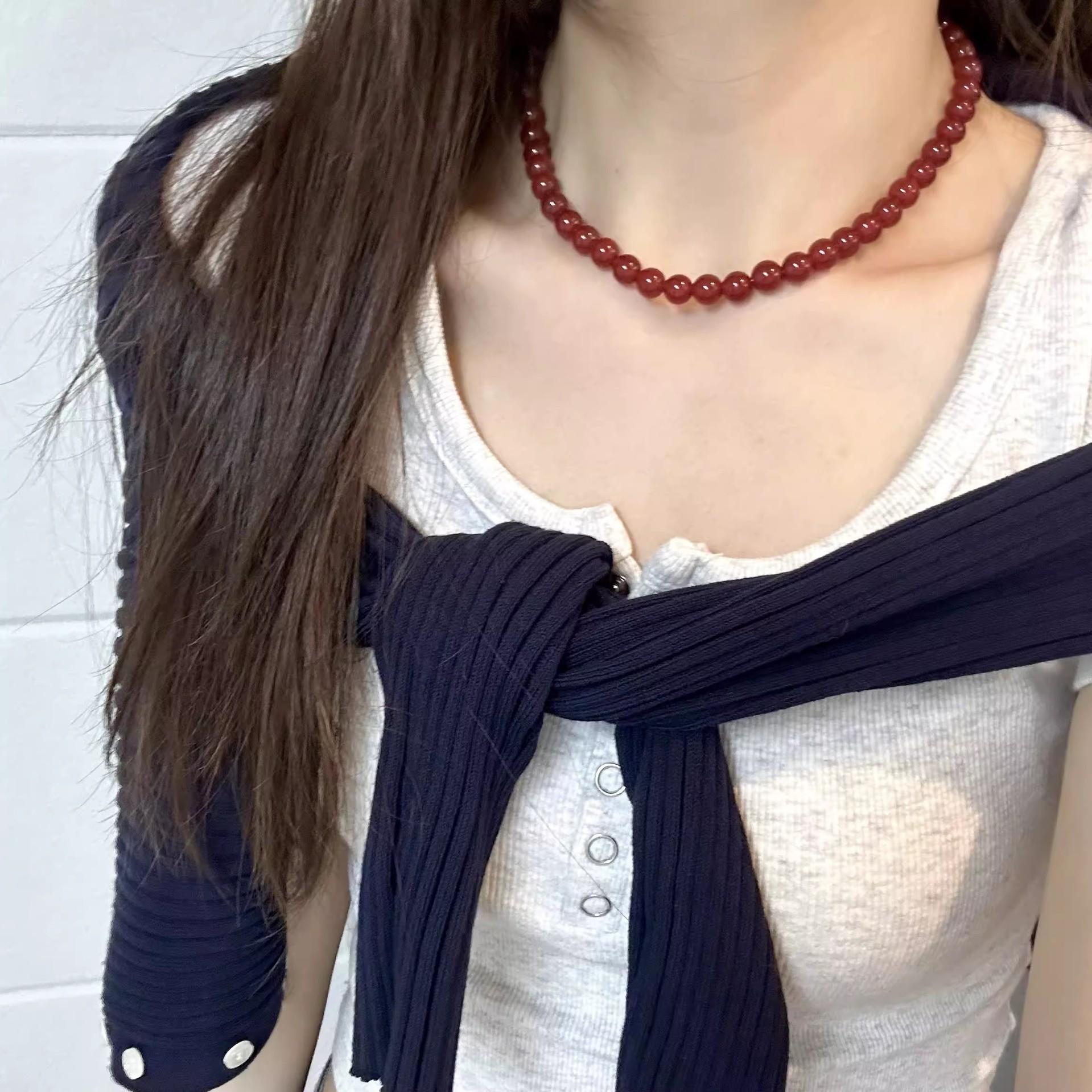 Nuevo collar de cuentas rojas de estilo nacional chino para mujer, cadena de clavícula blanca pequeña retro, elegante y de alta calidad.
