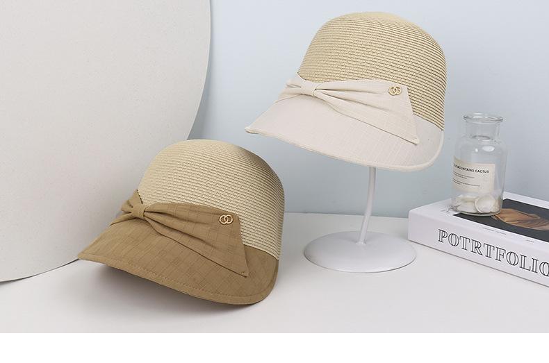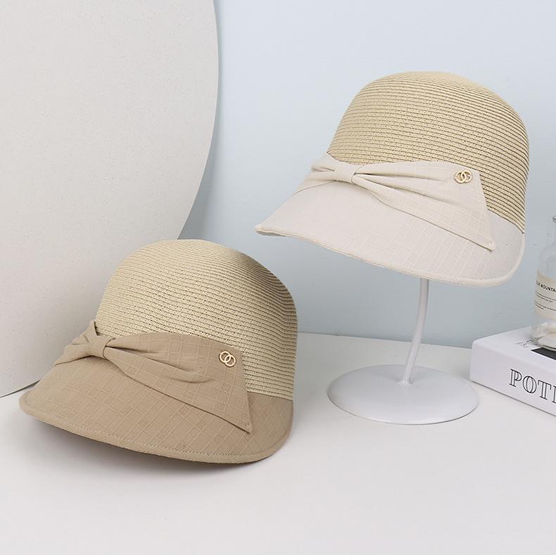 Nuevo sombrero de paja con lazo para mujer, estilo coreano, elegante, combinable con todo, para uso diario, para primavera y verano, para exteriores, con protección solar.