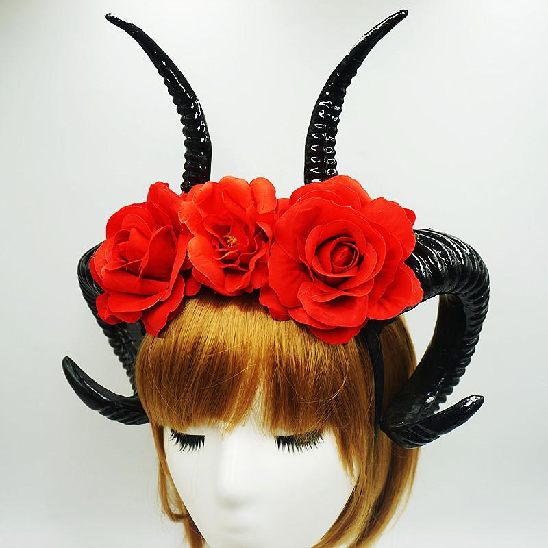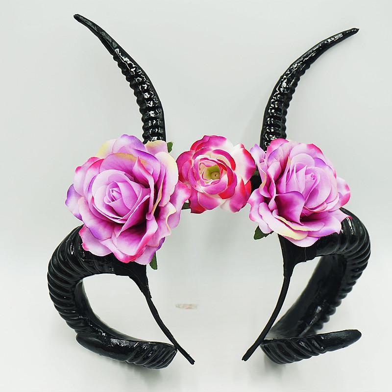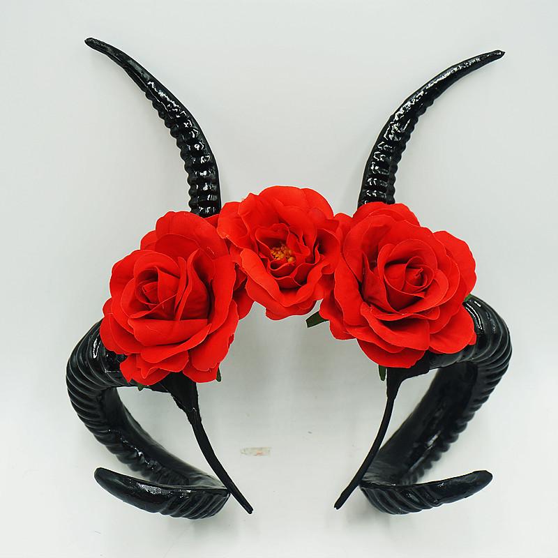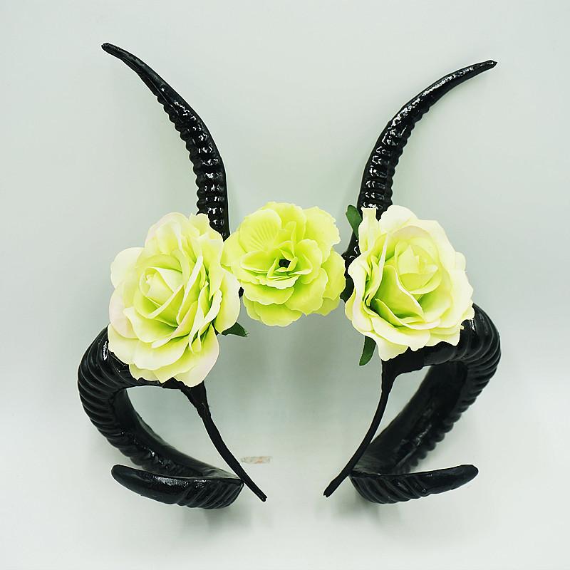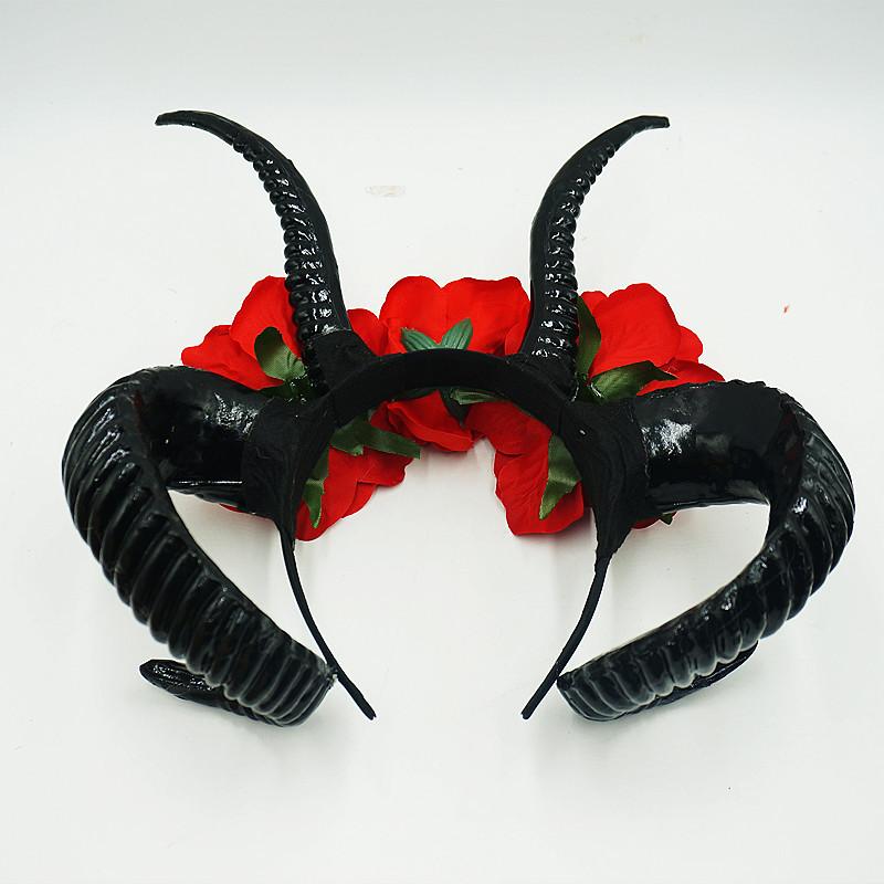 Diadema de Halloween con cuernos de flor de imitación nuevos, peso: 190 gramos, largo y ancho: 30*30 cm. Nuestros productos son todos desarrollados y producidos por nosotros mismos, por lo que puede usar las imágenes con confianza. Podemos realizar negocios de prueba y producción de clientes localmente, ¡bienvenido a cooperar!