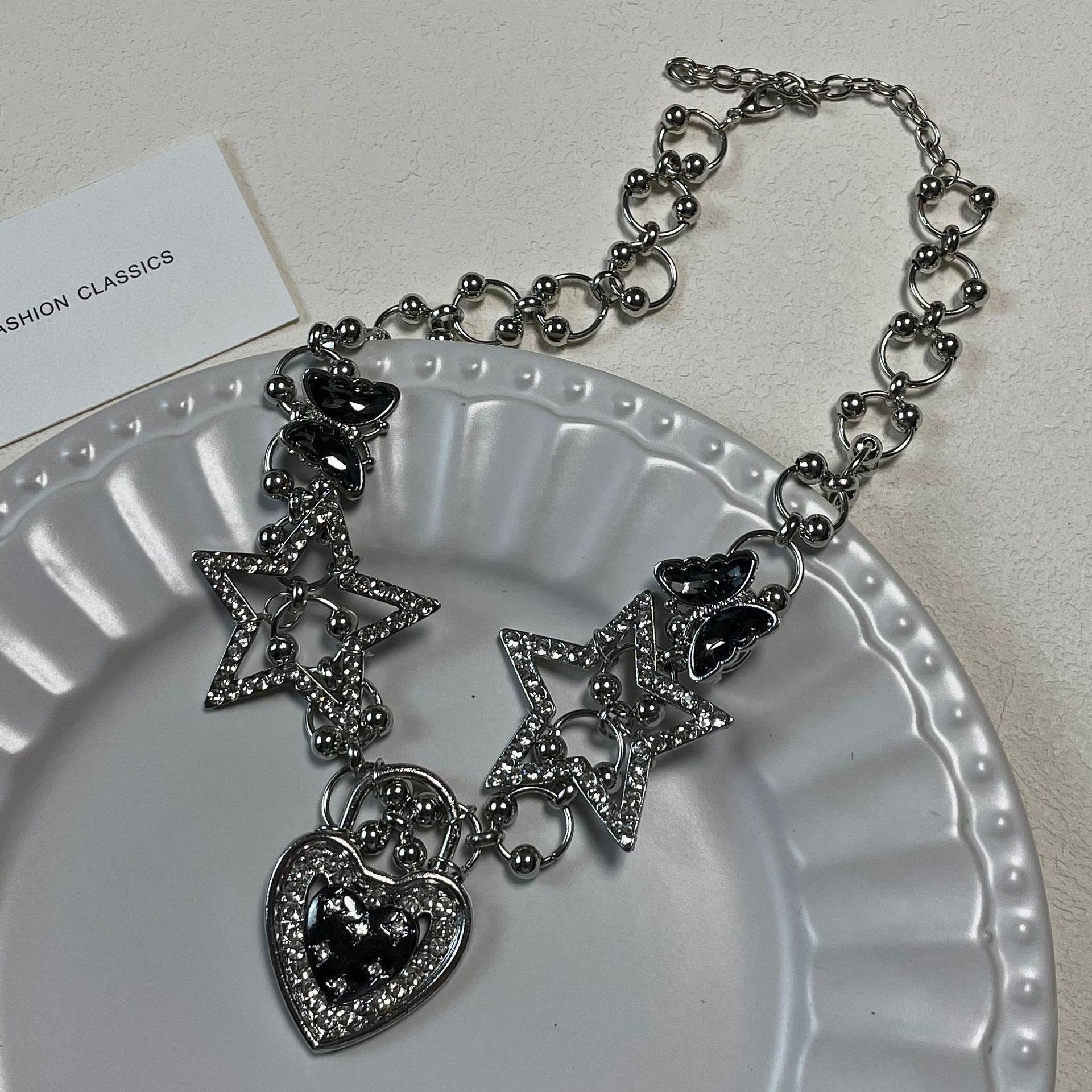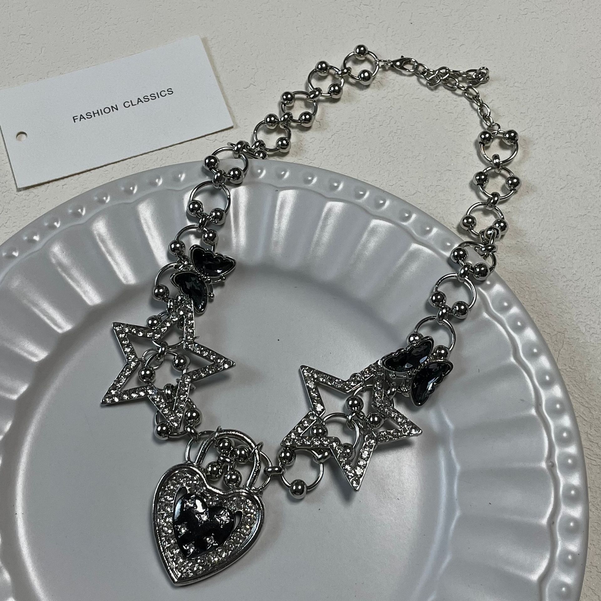 Collar con colgante de mariposa, estrella y amor, elegante y de lujo, con personalidad de nicho, dulce y genial, accesorios de cadena para clavícula de gran sentido.