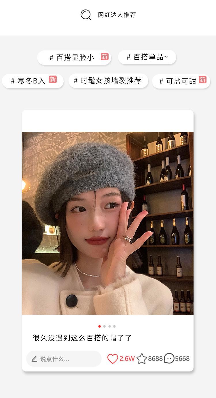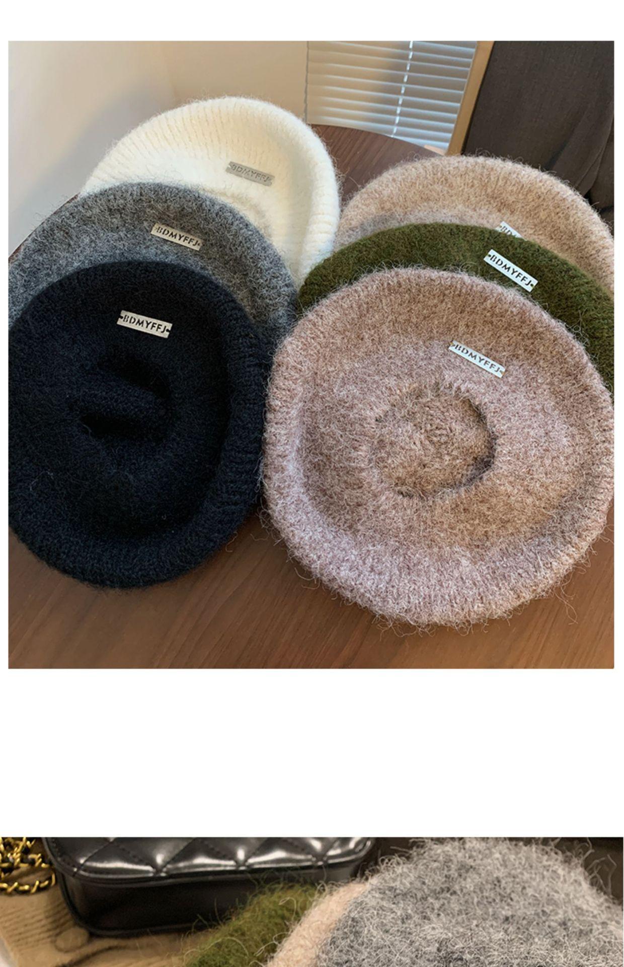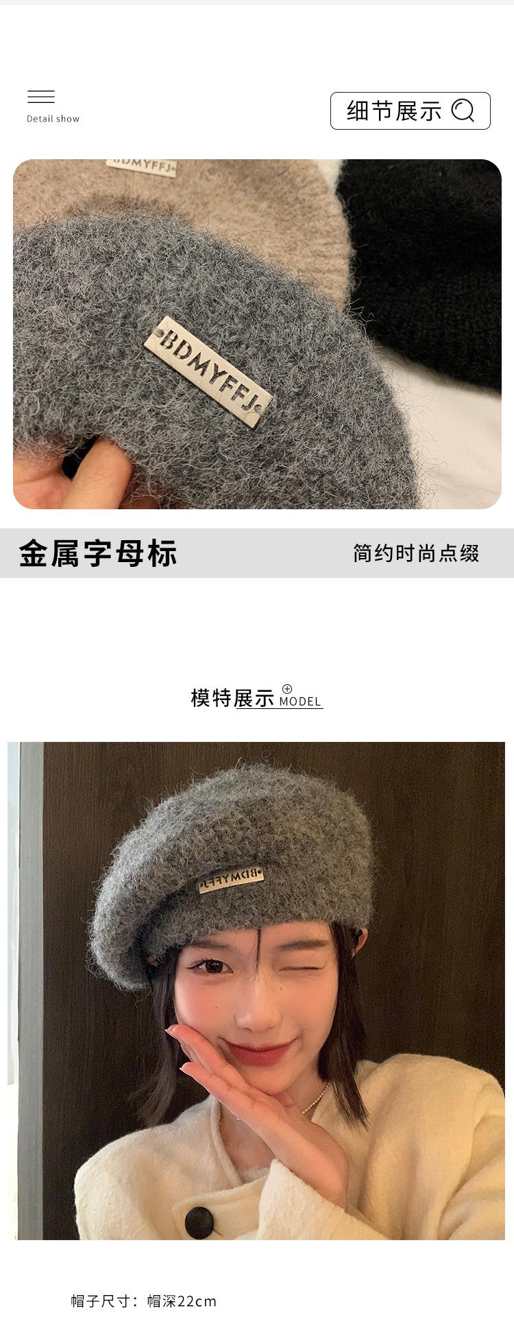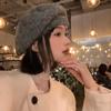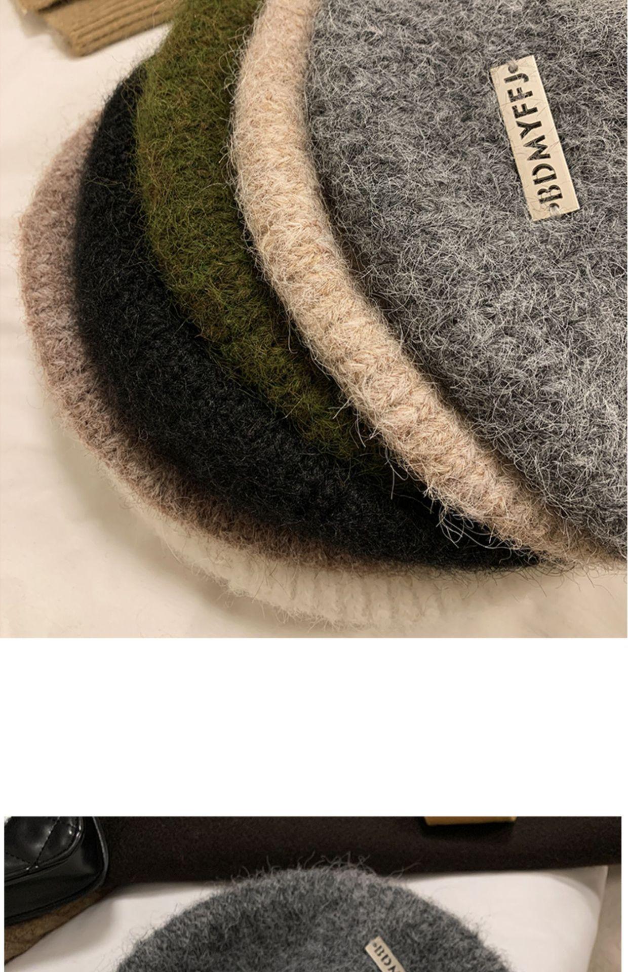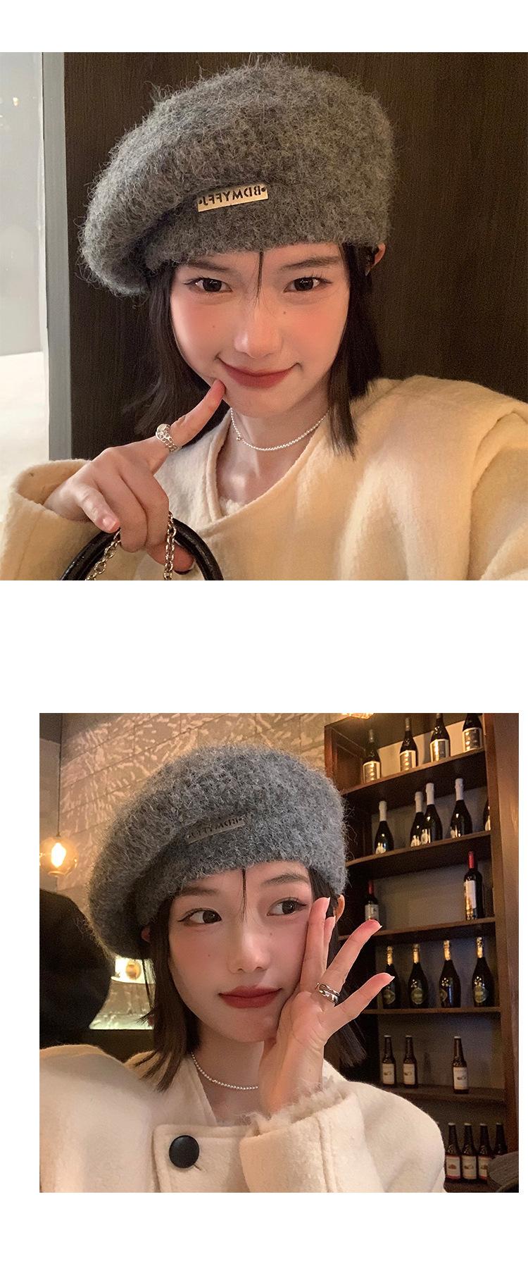 Boina mohair gris para mujer otoño e invierno estilo japonés circunferencia de cabeza grande cálida sombrero de pintor Beilei sombrero que hace ver la cara pequeña moda