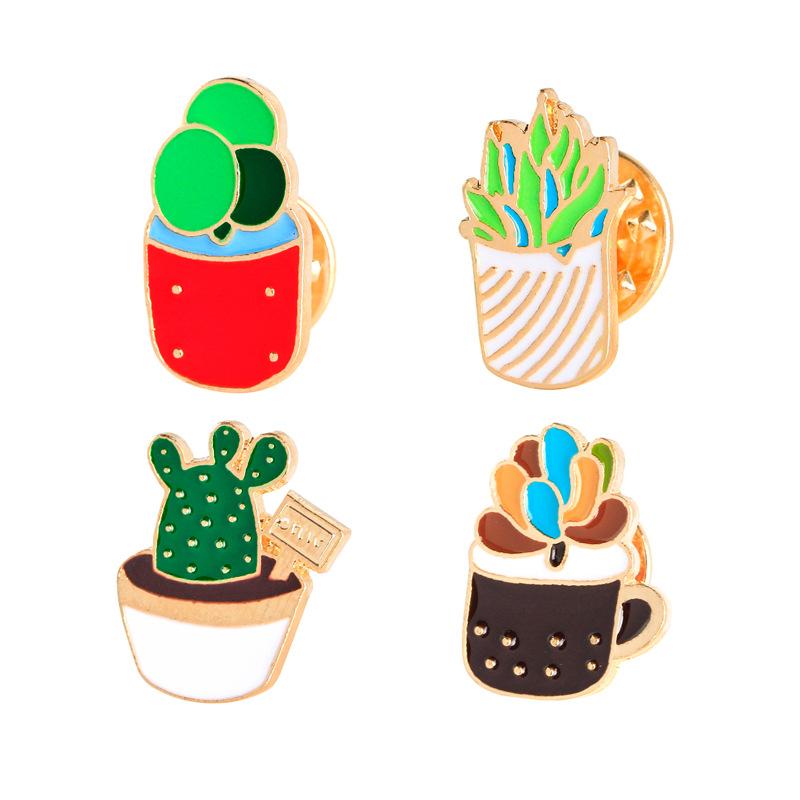 Joyería Europea y Americana Temu Más Vendido Conjunto Creativo de Dibujos Animados Broche Flor Bonsái Cactus Pin de Esmalte Pin de Solapa