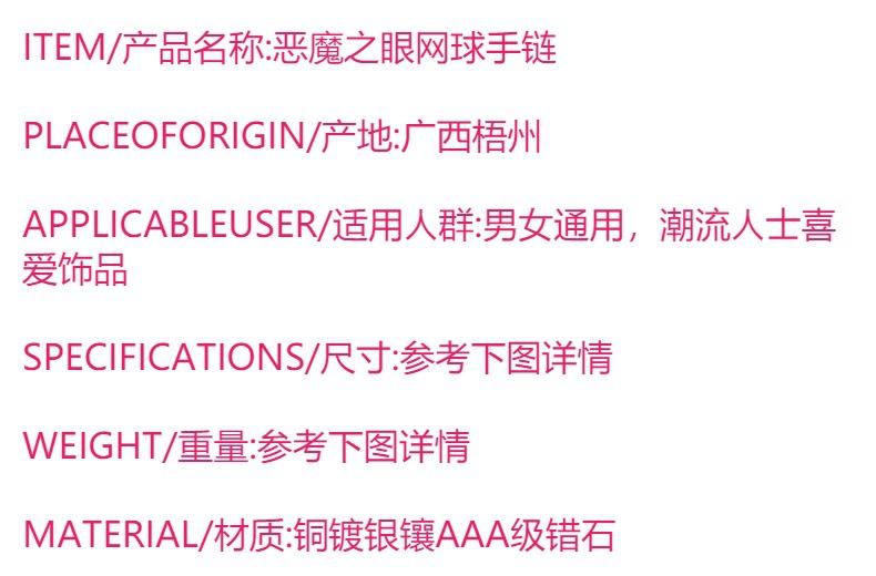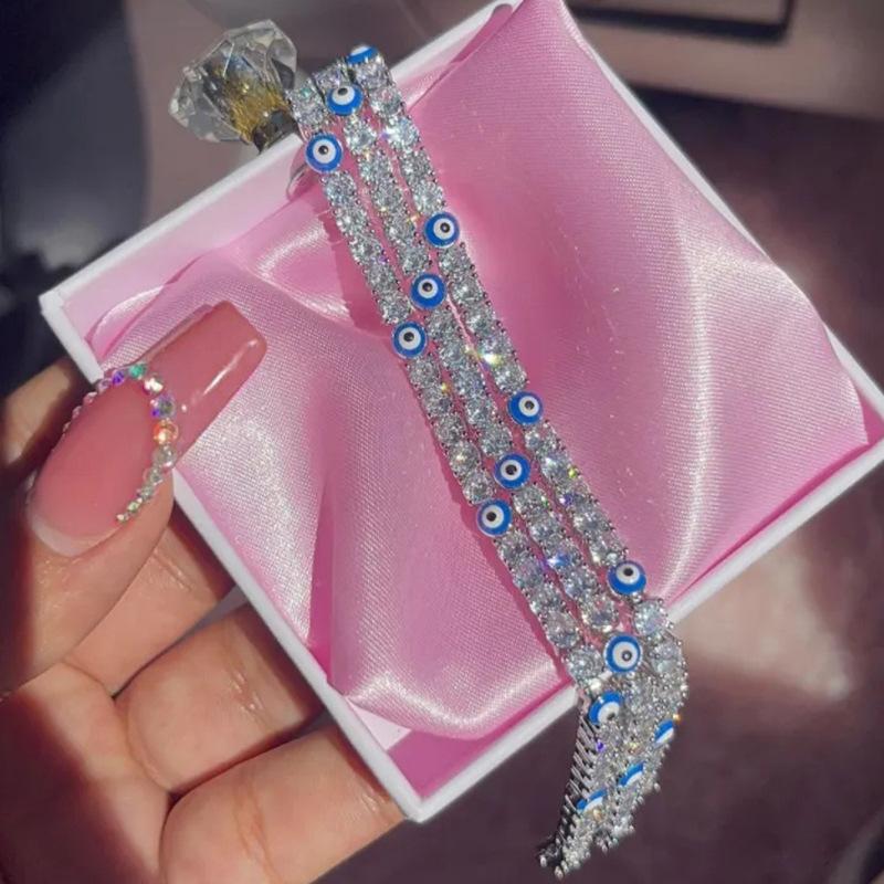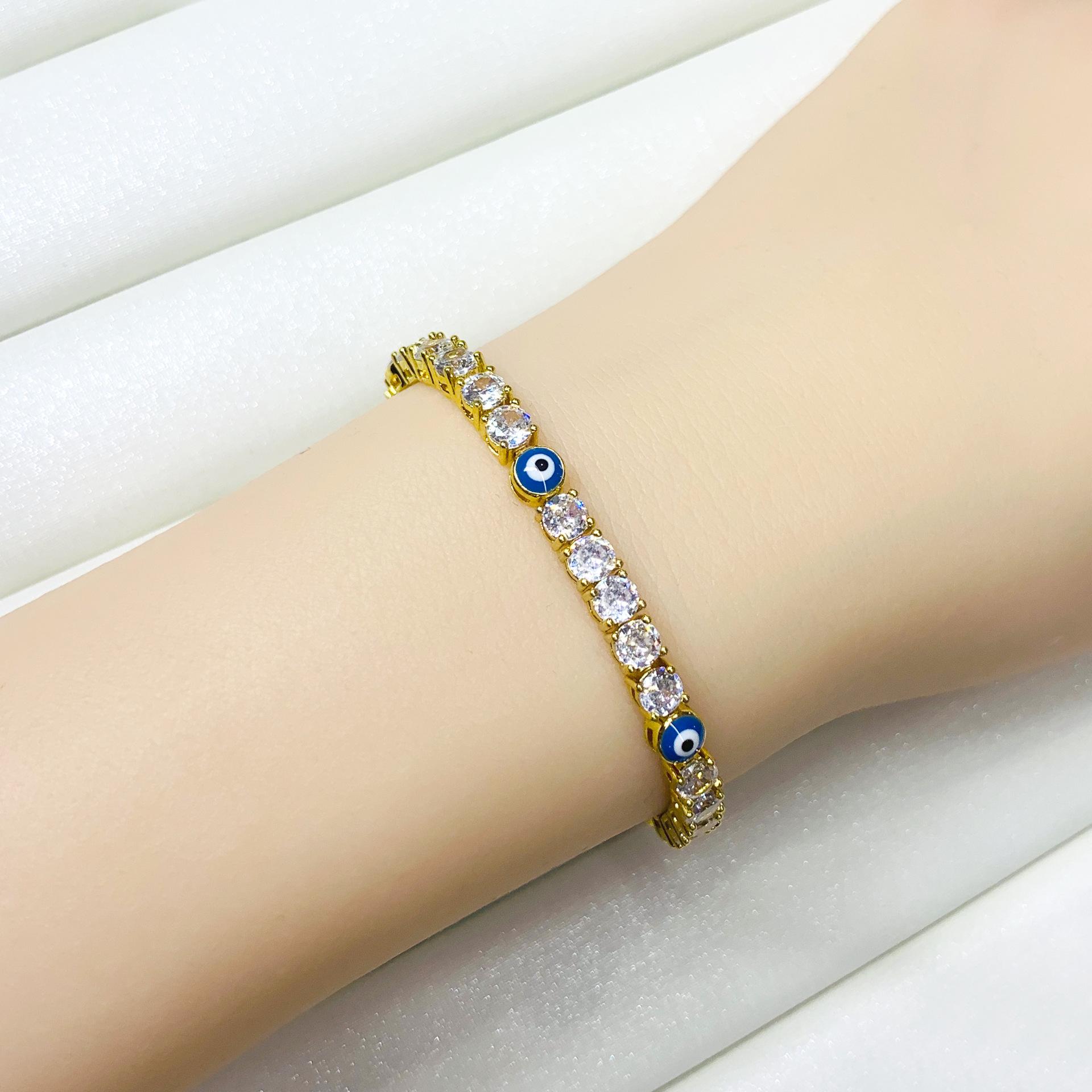Joyería Transfronteriza Europea y Americana Pulsera Ojo del Diablo Femenina Ojos Malignos Tendencia de Moda Circonita Cadena de Tenis Joyería Pulsera