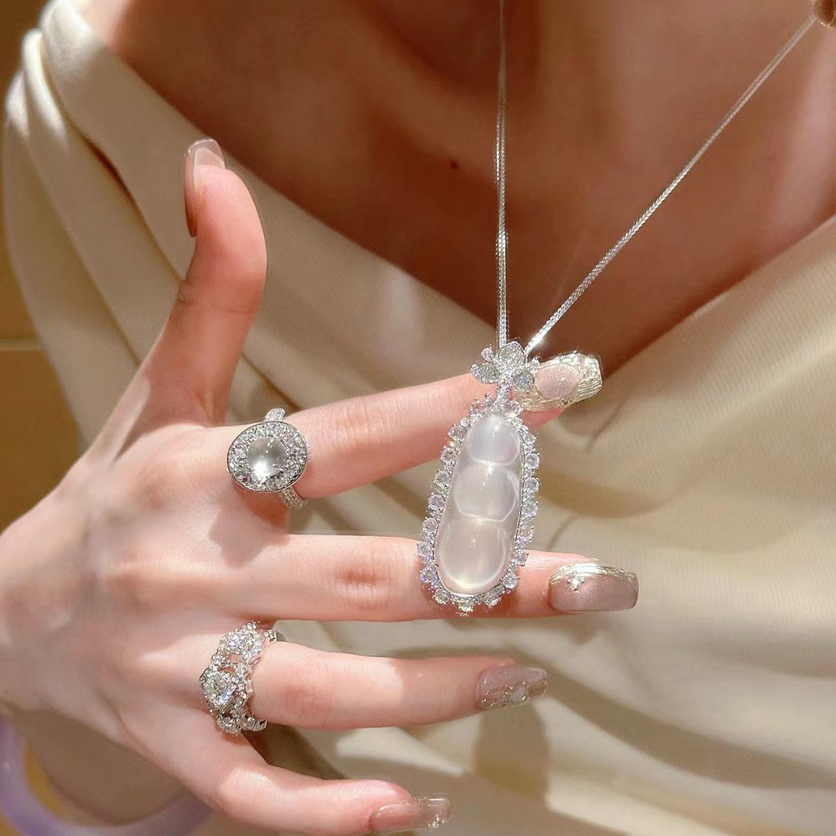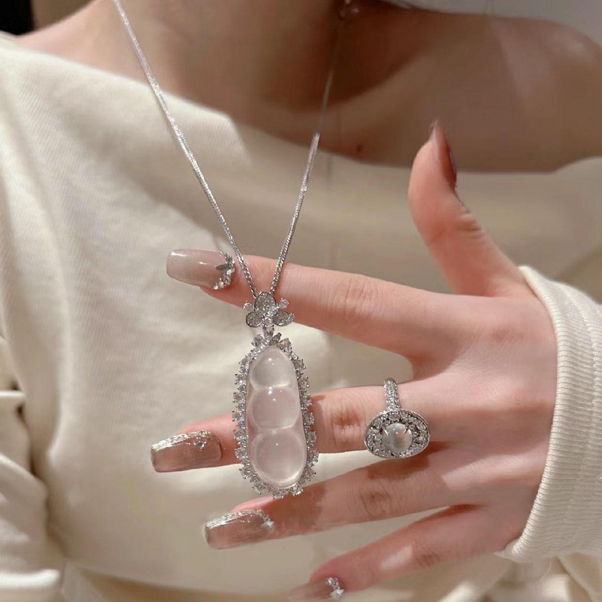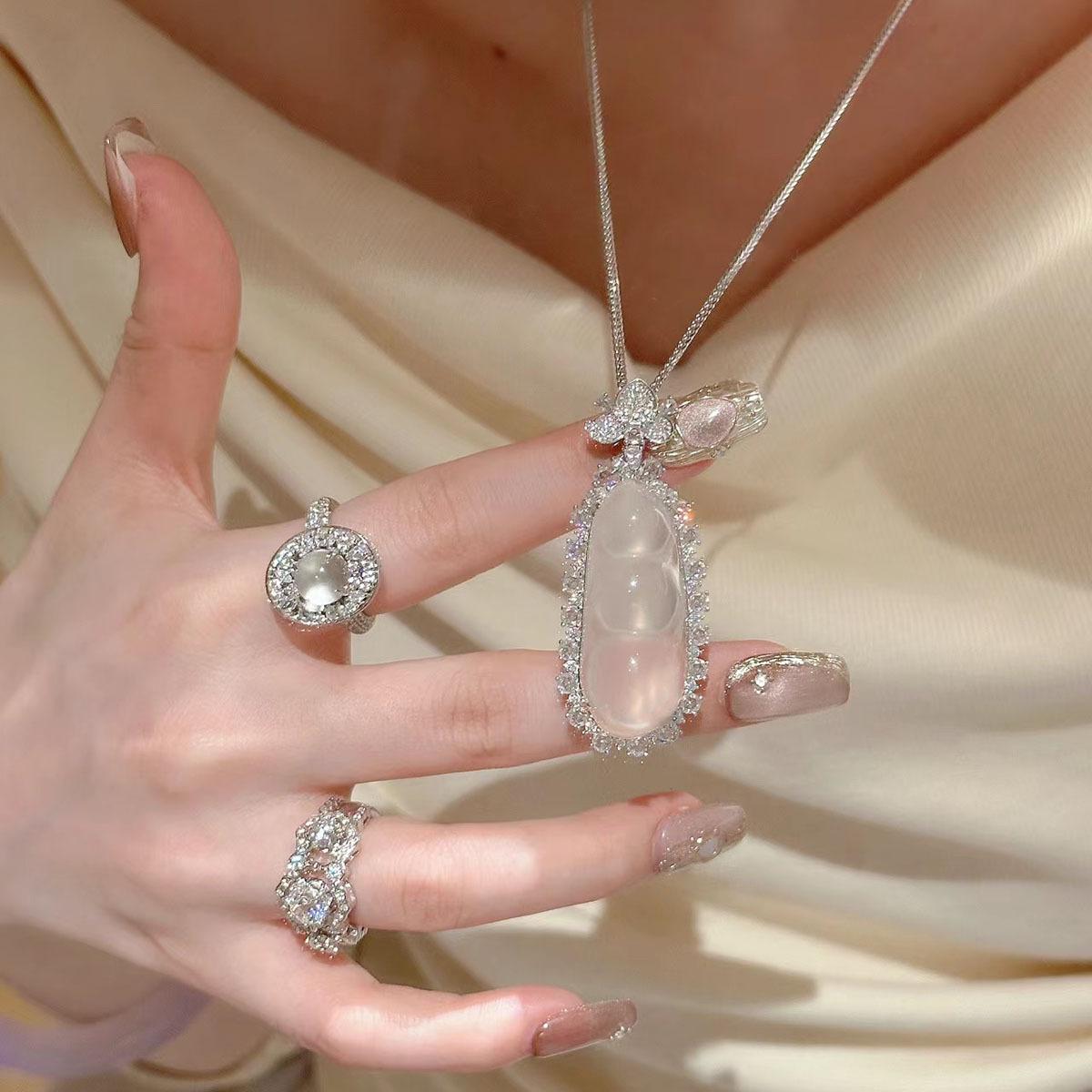 Nuevo Collar con Colgante Fudou de Calcedonia Blanca Hielo de Estilo Chino Incrustado con Zircón Temperamento Gentil Cadena de Clavícula de Alta Gama para Mujeres