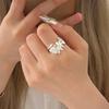 Anillo para Mujer, Anillo Abierto de Circonita Flor de Cuatro Hojas, Diseño Dulce de Nicho, Anillo de Dedo Índice a la Moda, Anillo Ajustable de Celebridad de Internet
