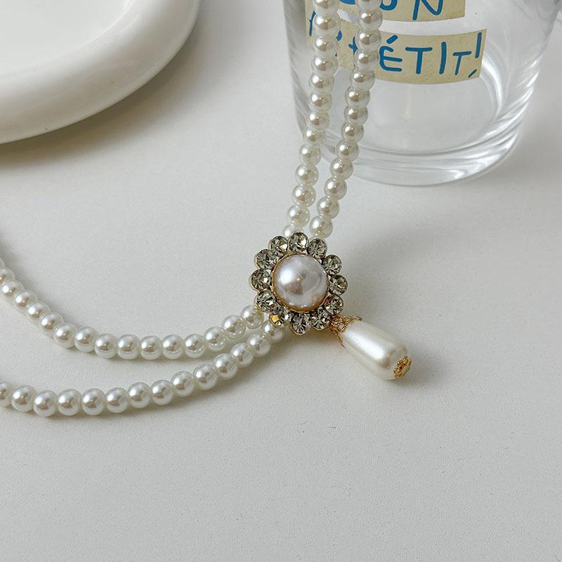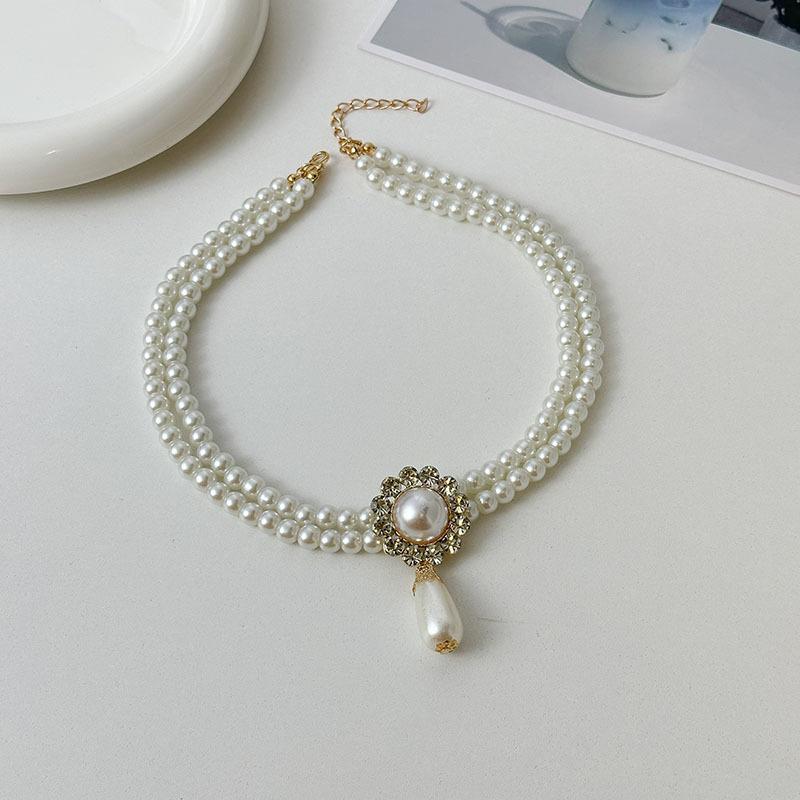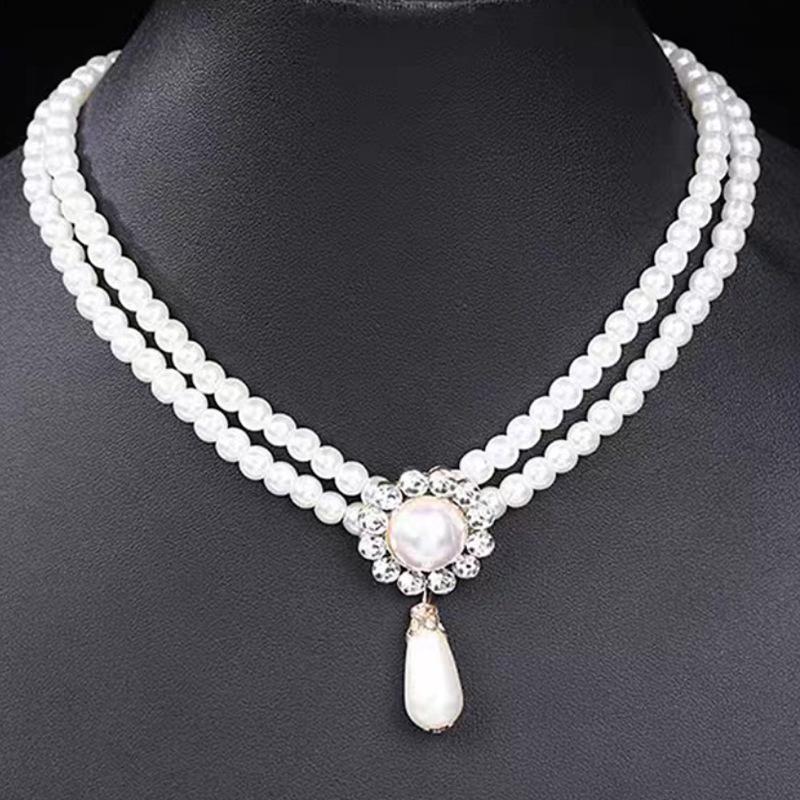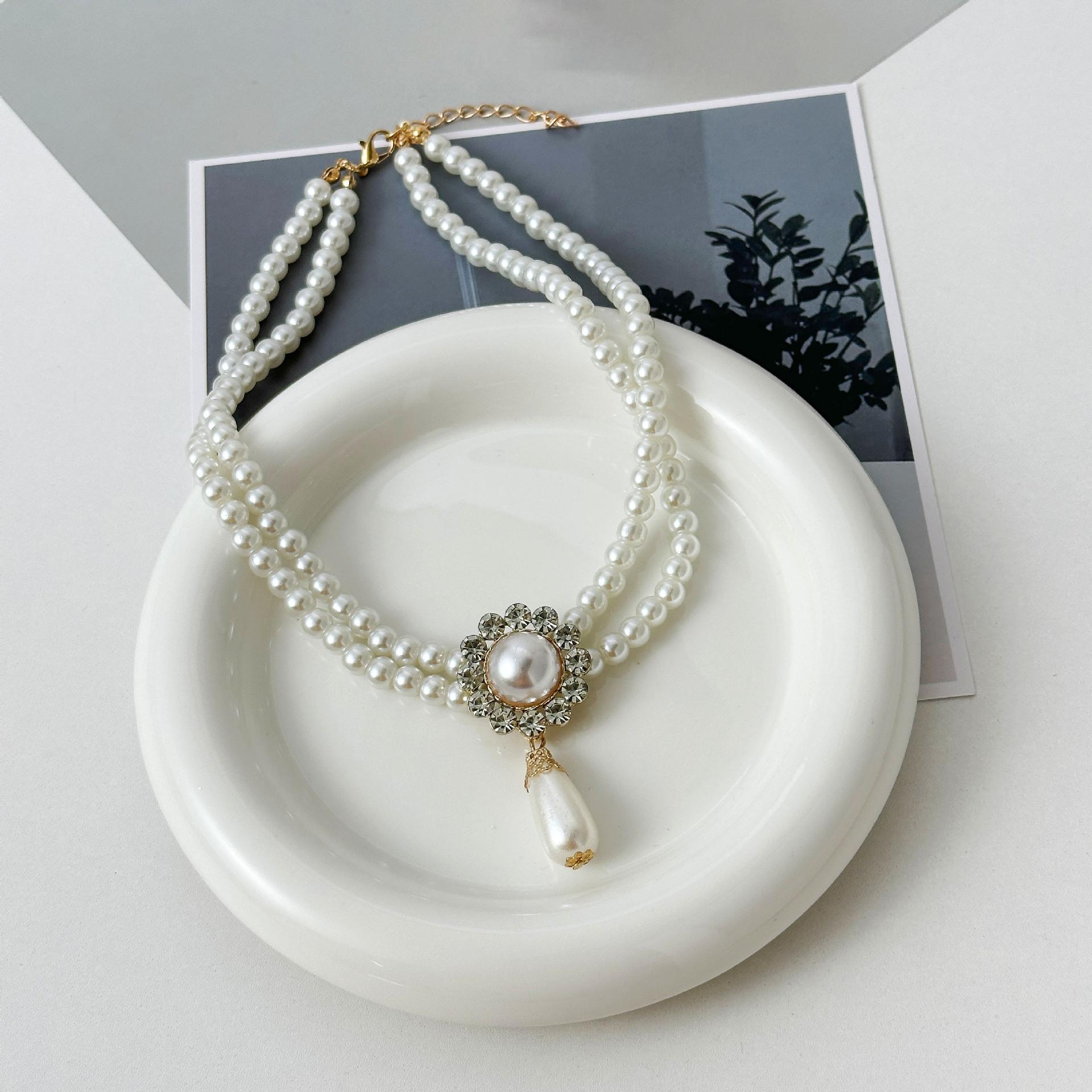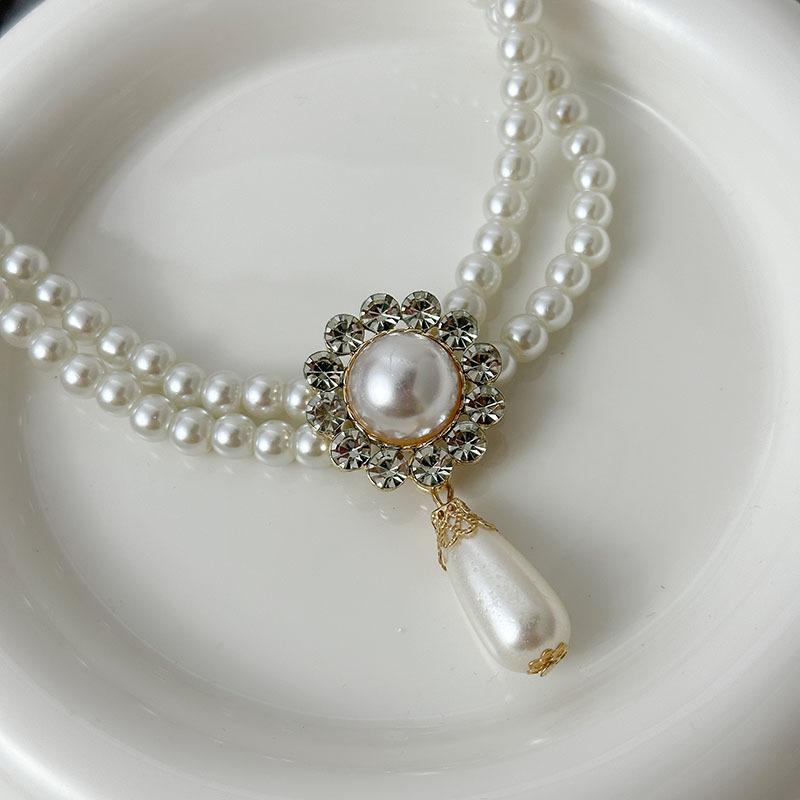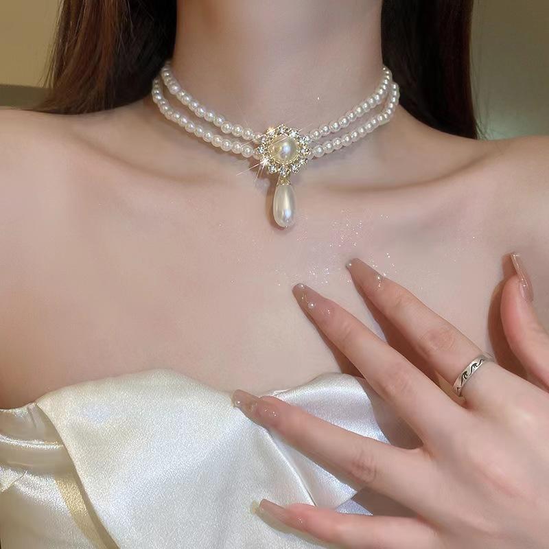 Collar de Cadena de Clavícula de Perlas de Doble Capa Nicho de Lujo Ligero Estilo Palacio Retro Elegante Elegante Accesorios para Vestido de Banquete