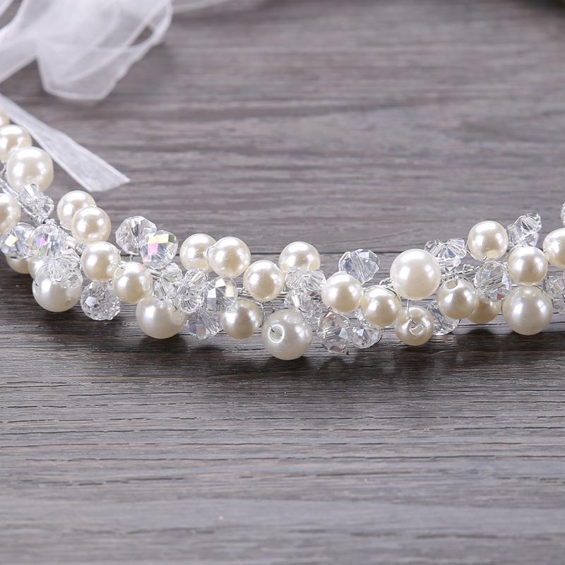 Diadema de perlas de cristal extendida, con gasa y cinta. ¡Amigos con necesidades especiales pueden anotarlas! ¡Las estaciones internacionales y Taobao tienen los mismos efectos especiales!