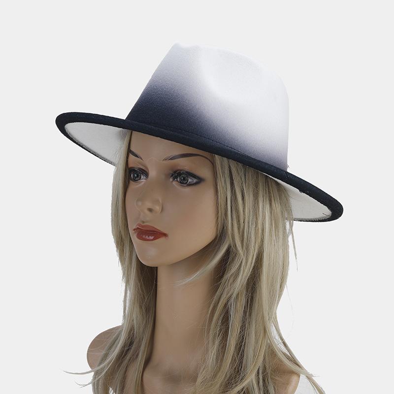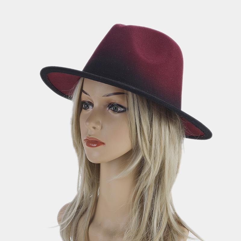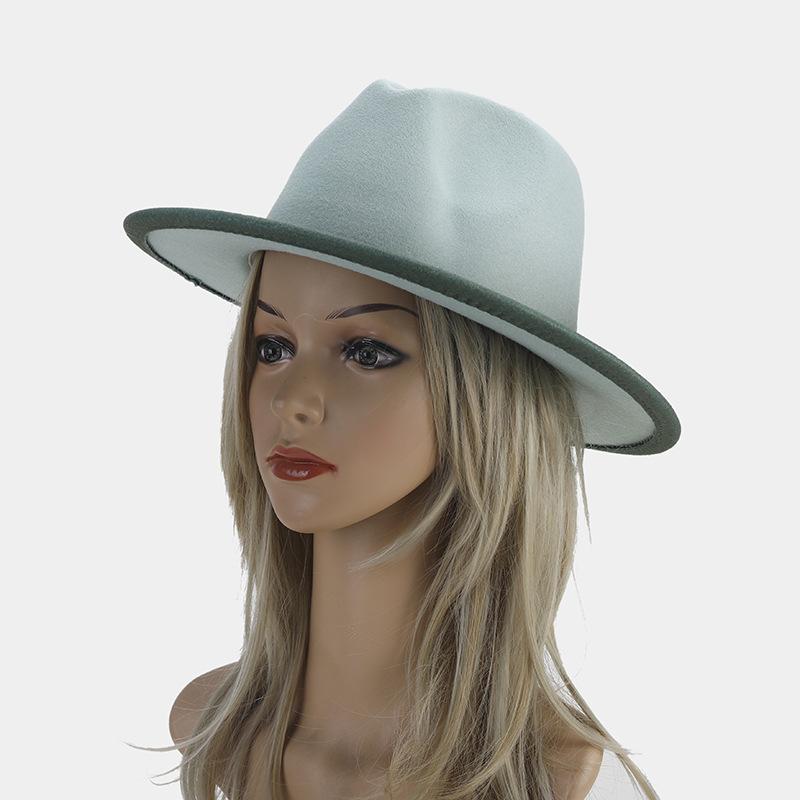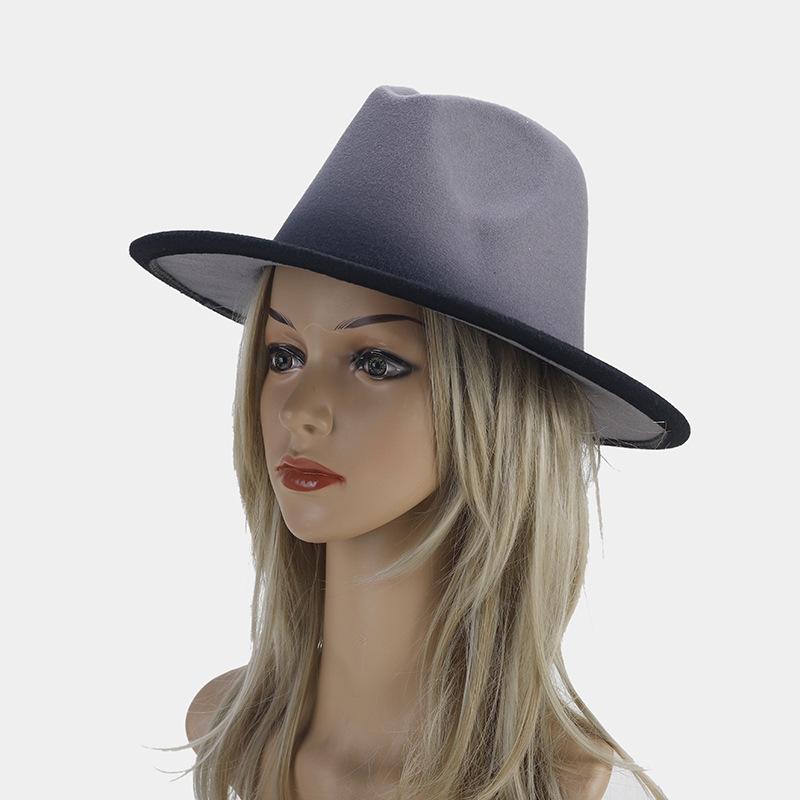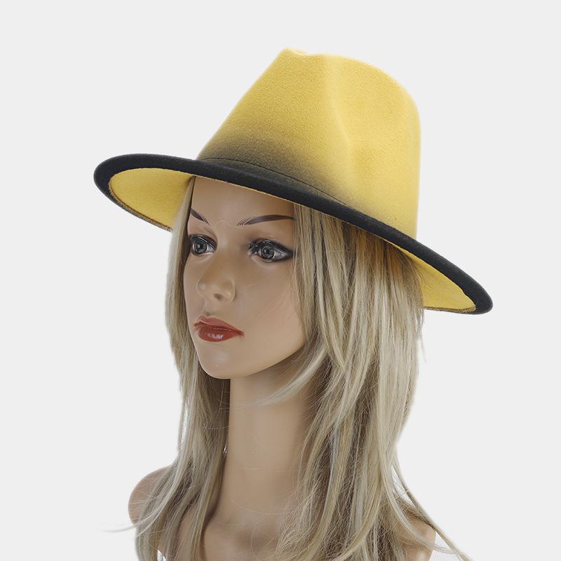 Nuevo sombrero de jazz decorativo de moda americana para otoño e invierno, sombrero de Panamá de color degradado para mujer, sombrero de cena con temperamento