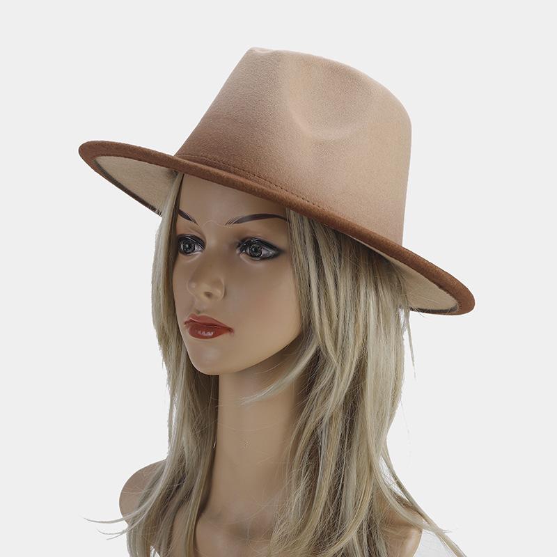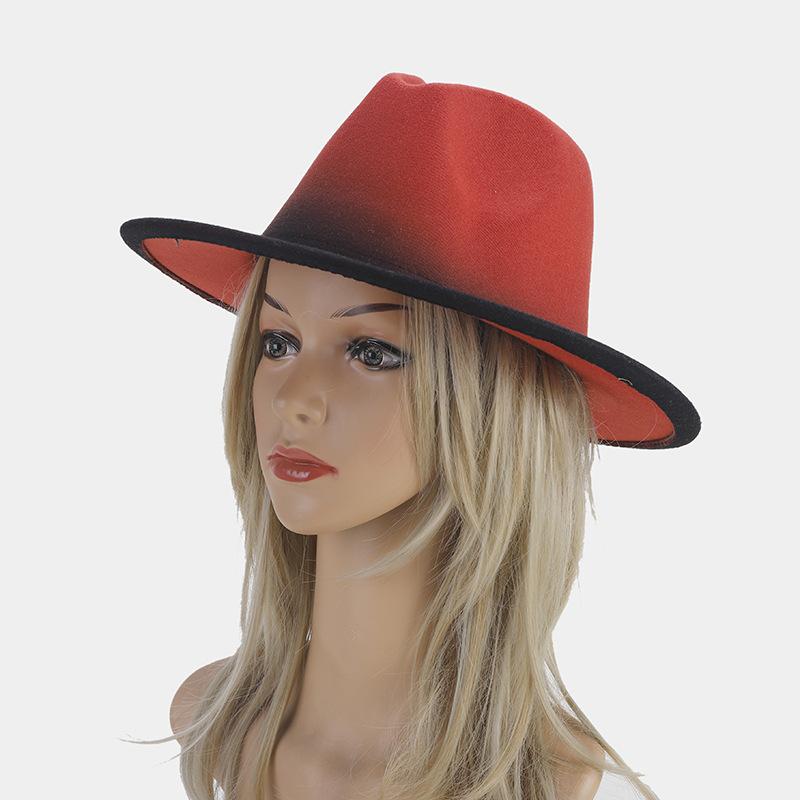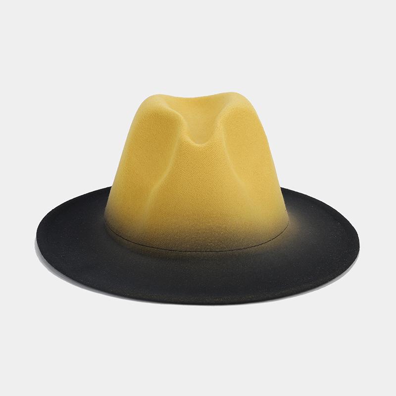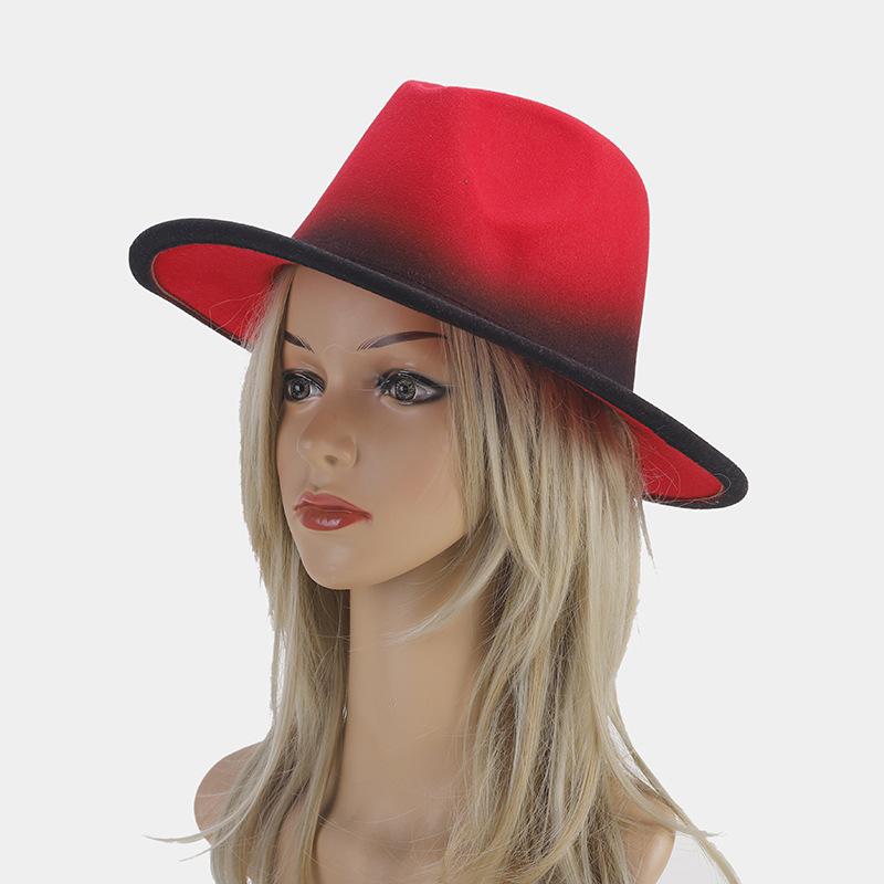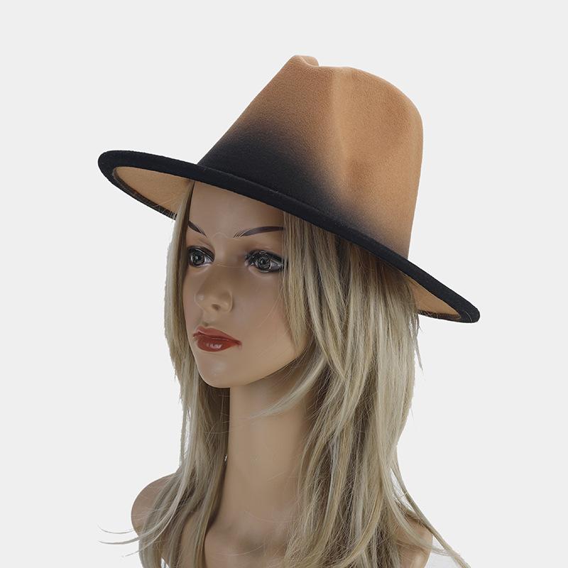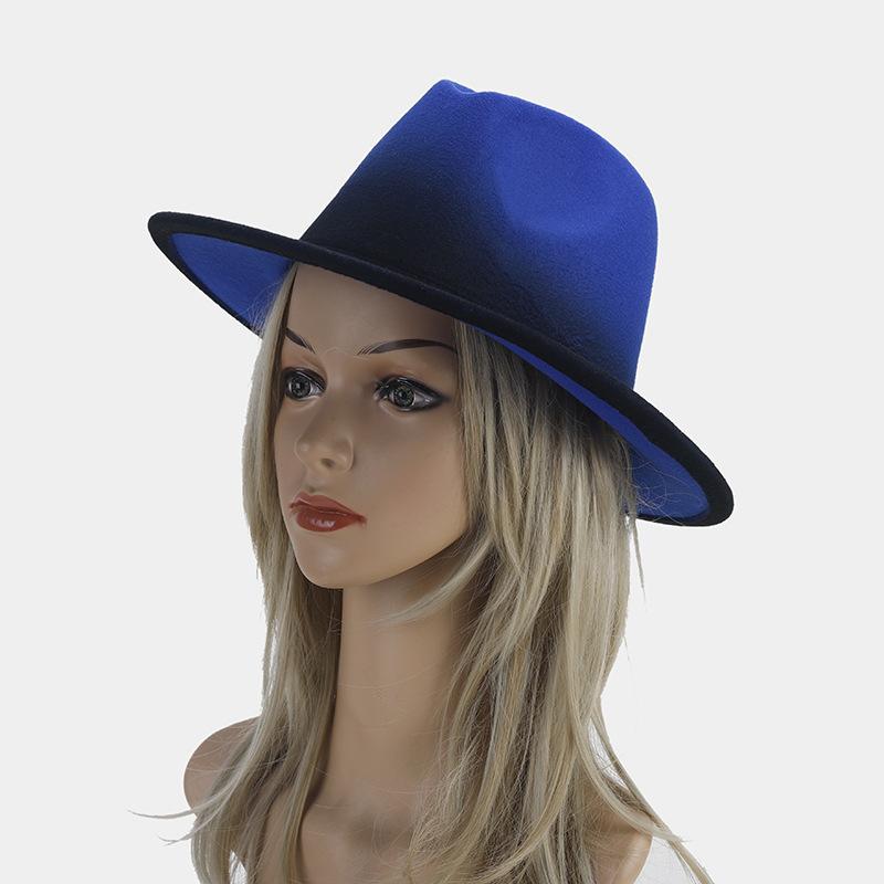 Nuevo sombrero de jazz decorativo de moda americana para otoño e invierno, sombrero de Panamá de color degradado para mujer, sombrero de cena con temperamento