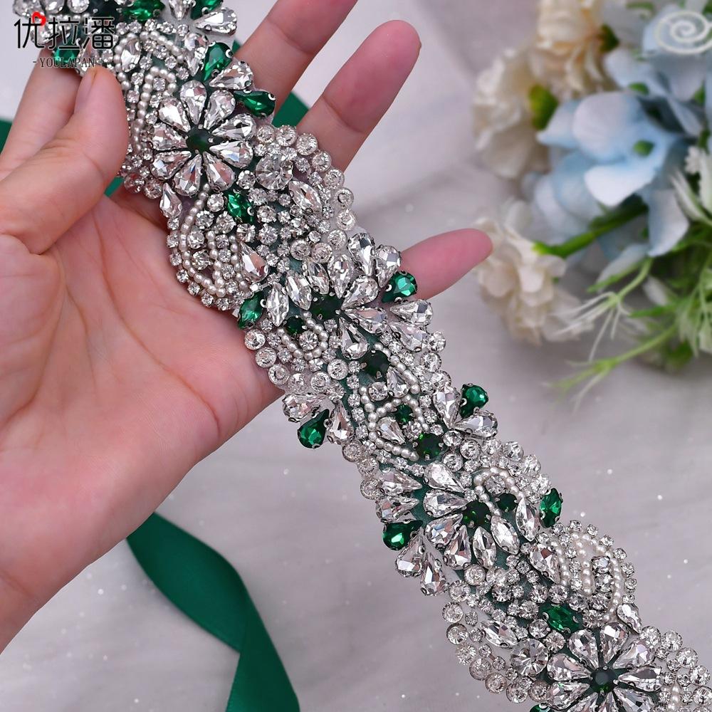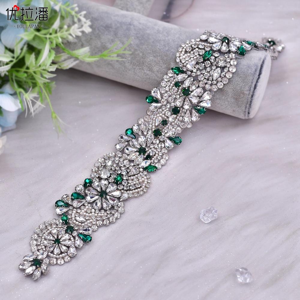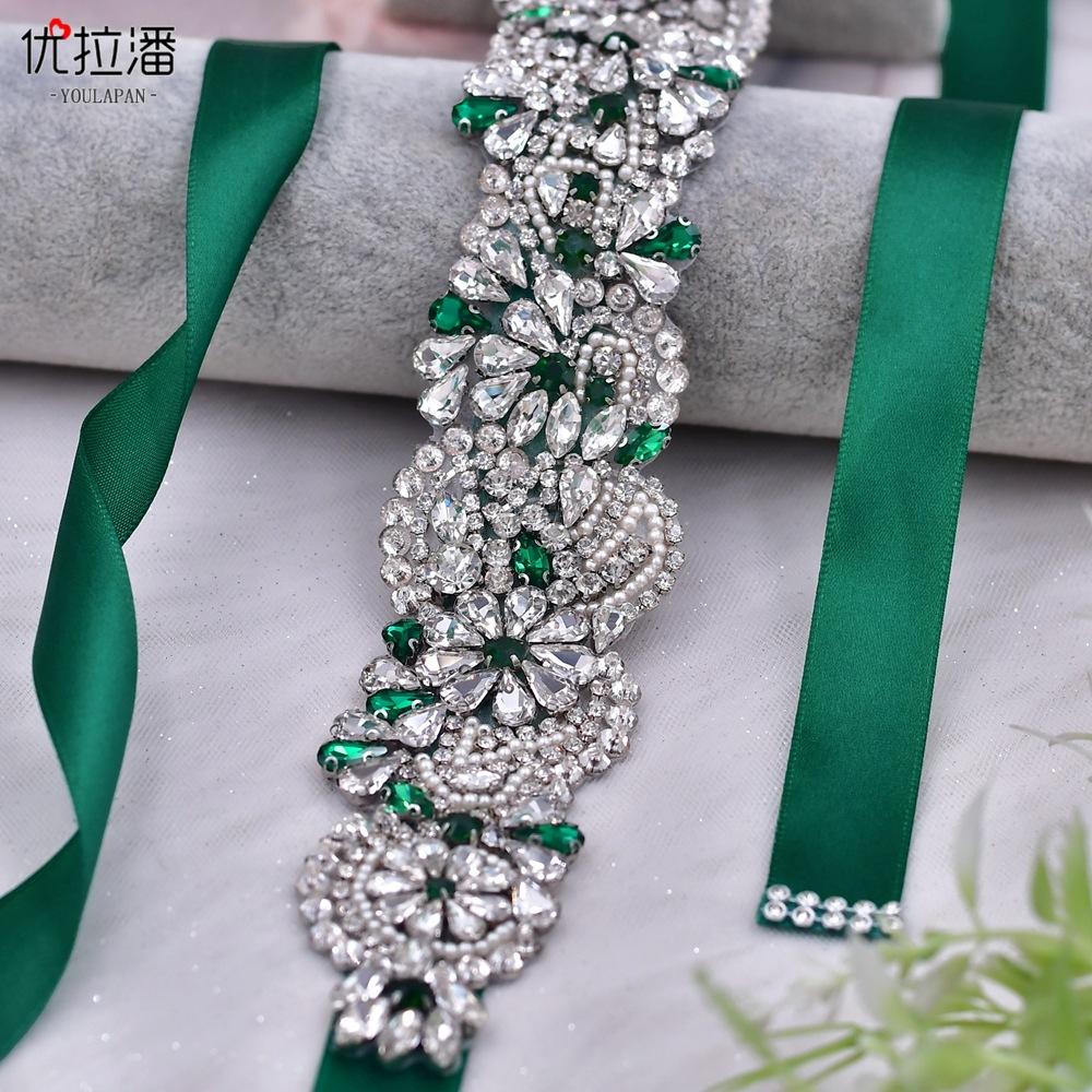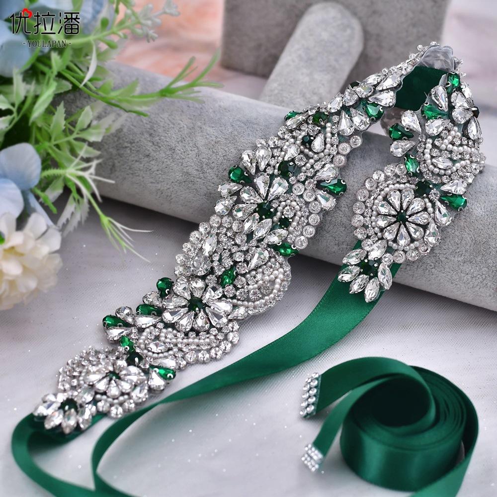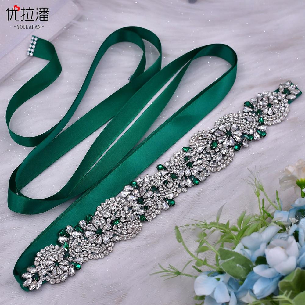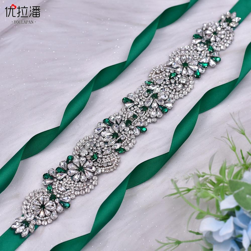 Youlapan S120 Agujero Verde Faja Vestido de Novia Europeo y Americano Esmeralda Sexy Correa de Cintura Cinturón de Boda