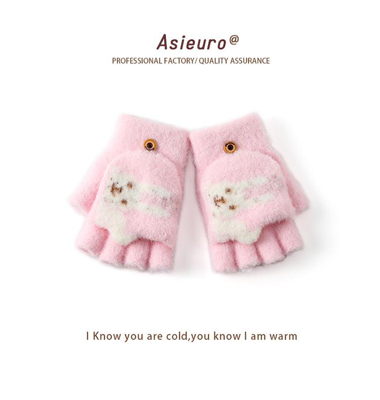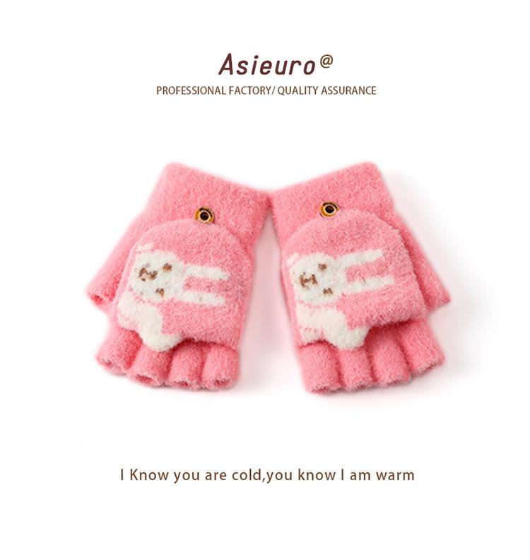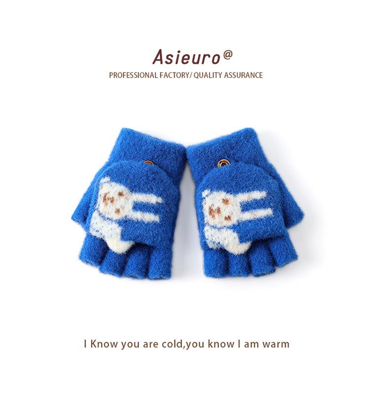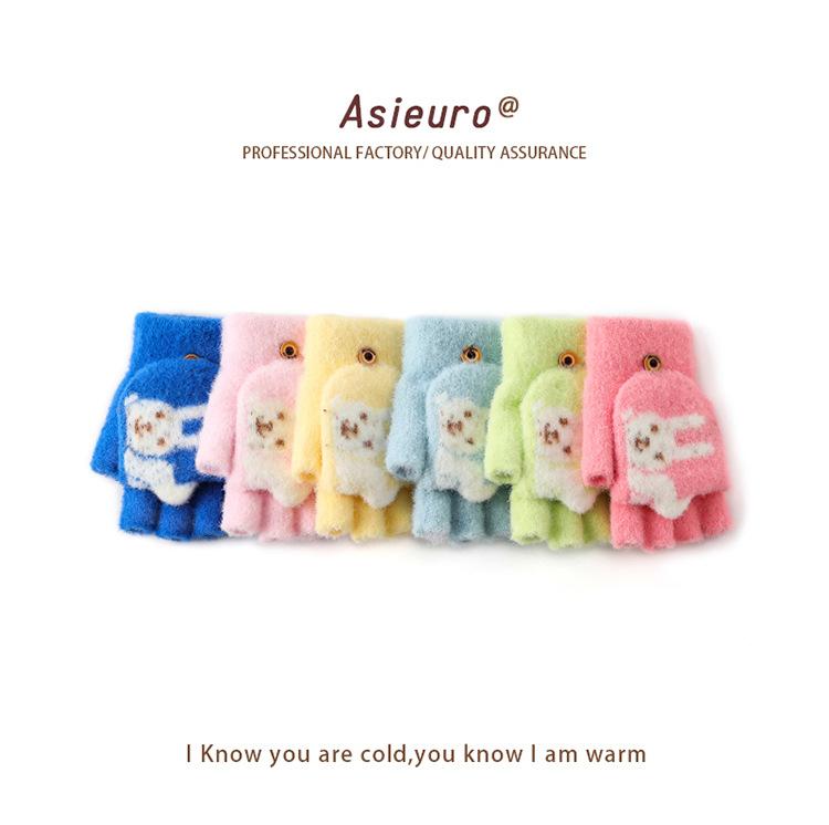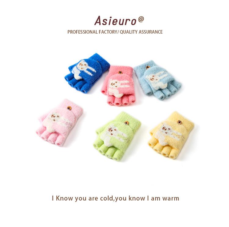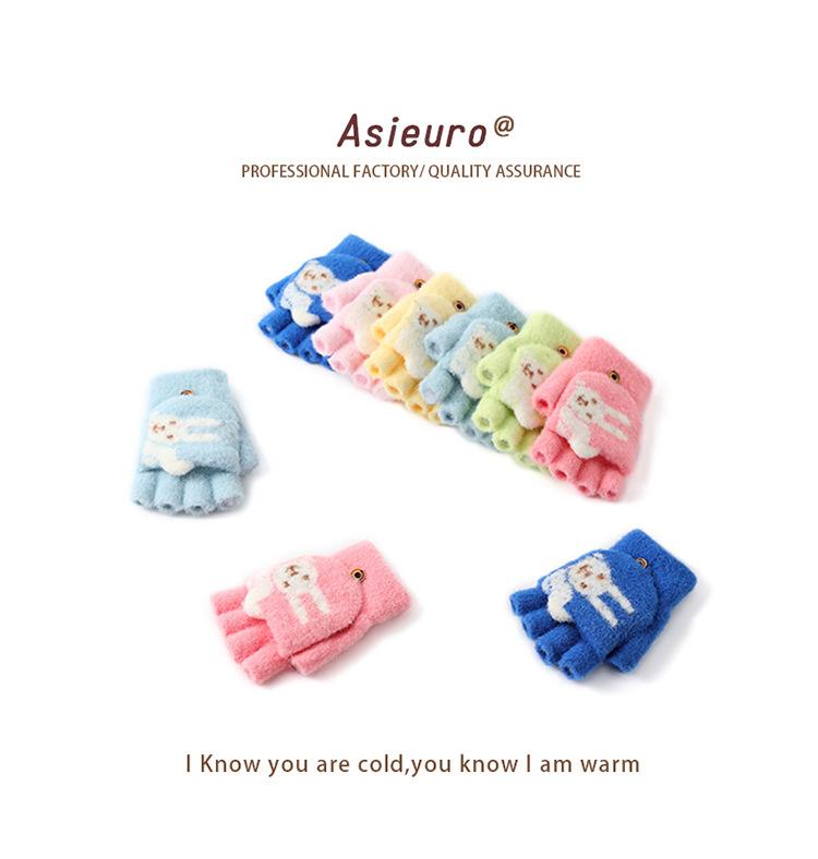 Guantes de punto cálidos para niños, además de guantes de terciopelo acolchados para los dedos, nuevos y lindos guantes de dibujos animados, venta al por mayor de fábrica.