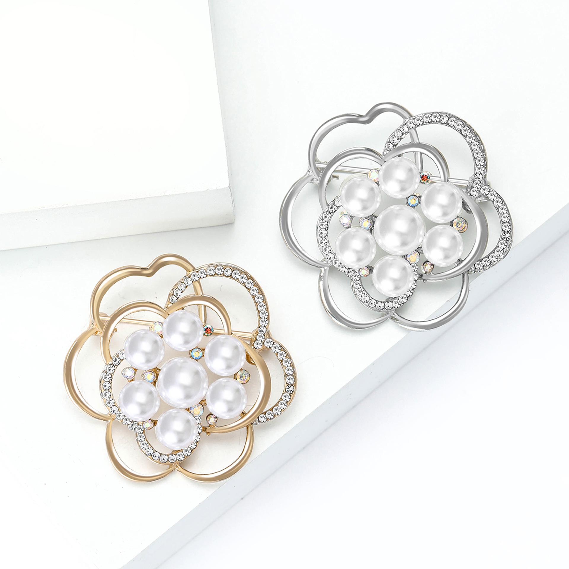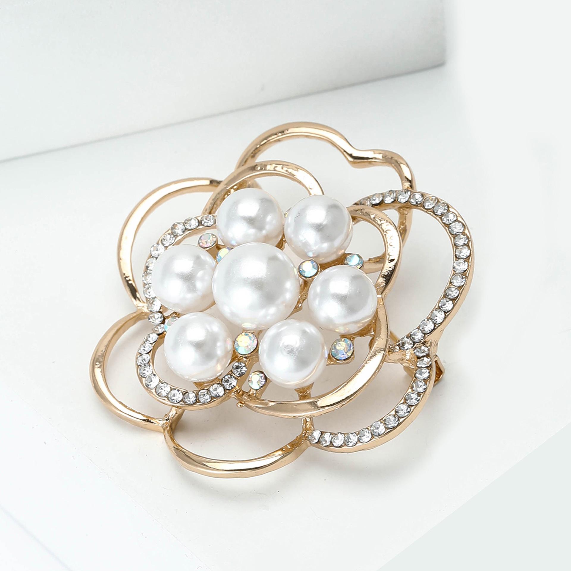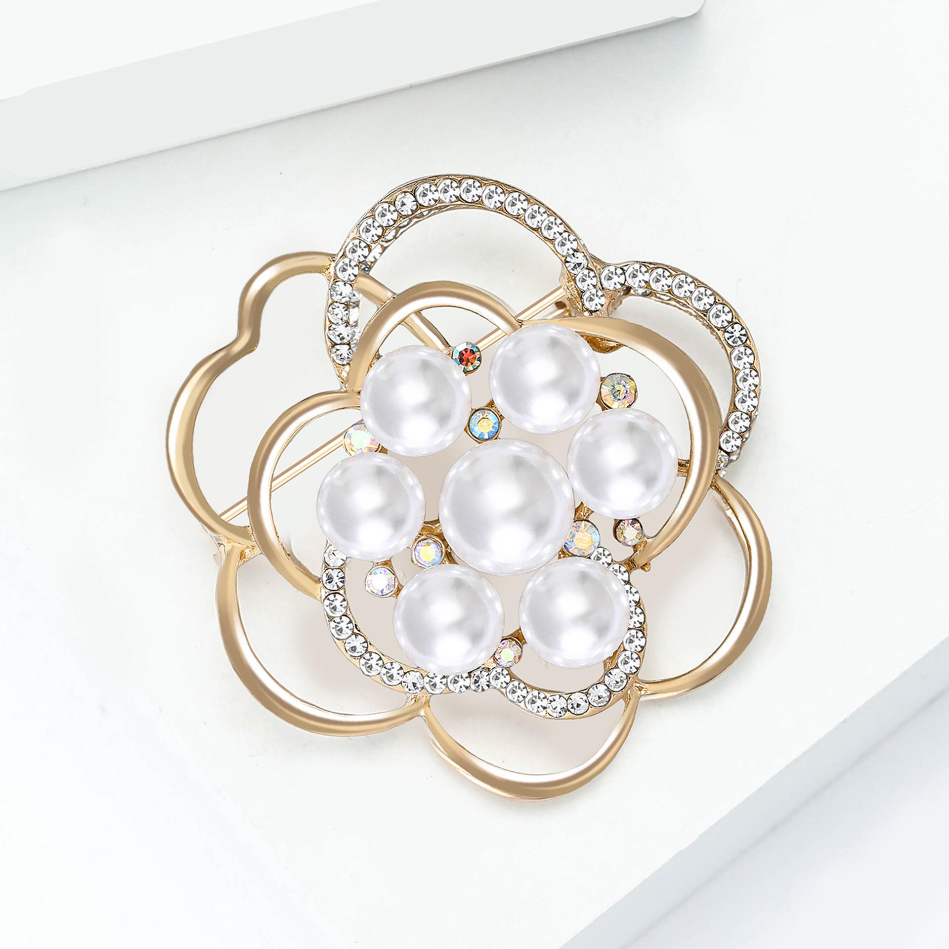 Broche de flor de perla hueca de aleación con diseño creativo coreano, broche sencillo de moda para mujer, ramillete, joyería