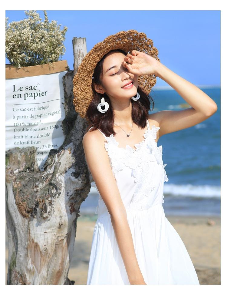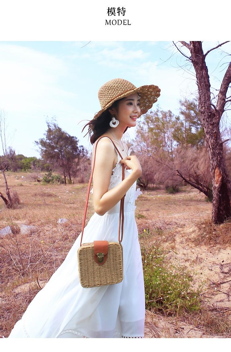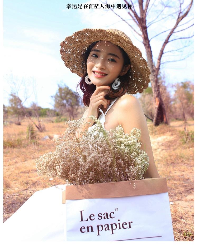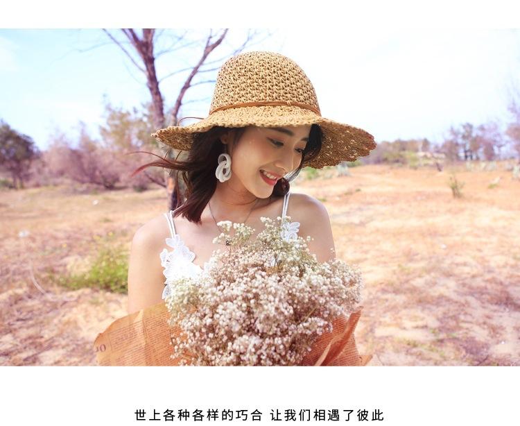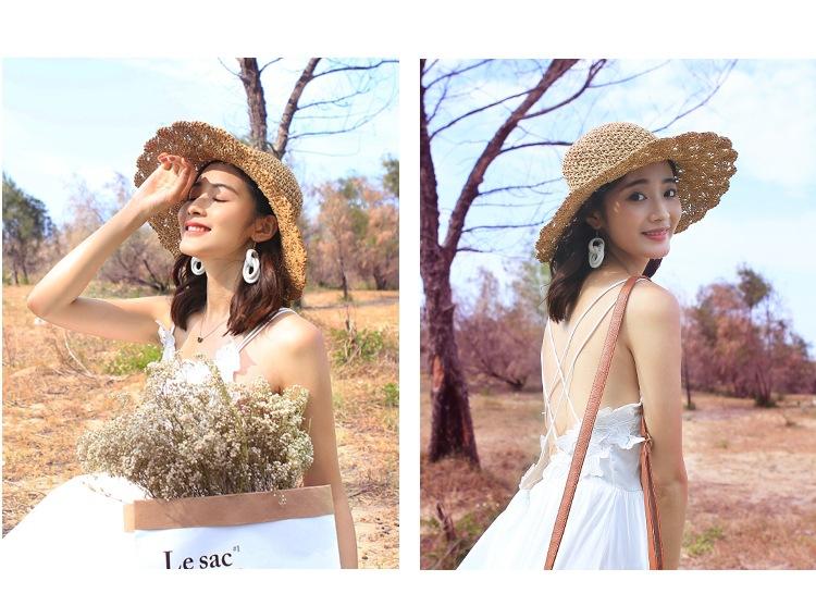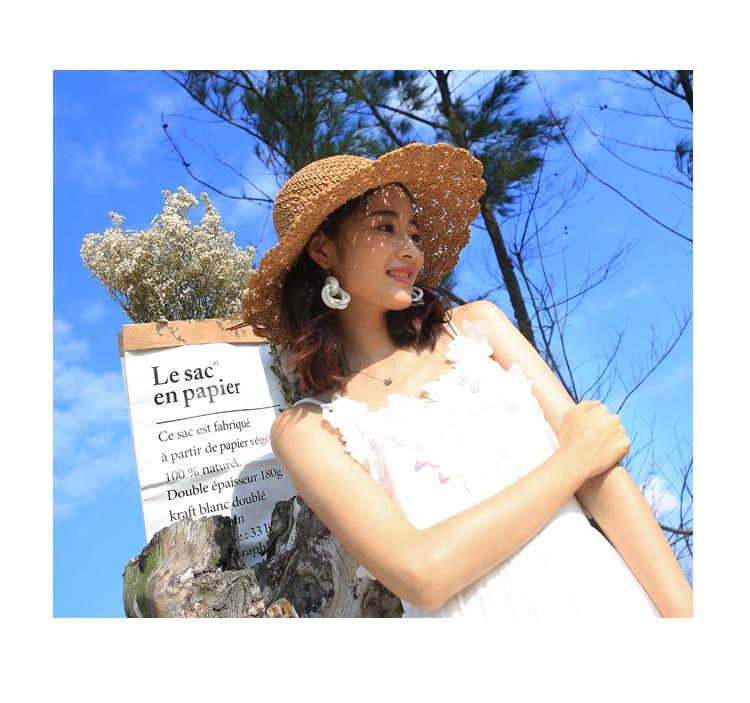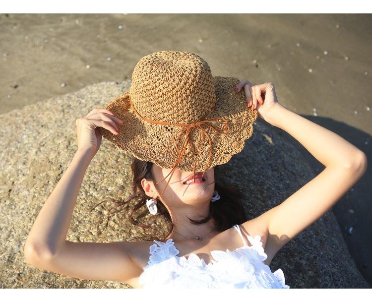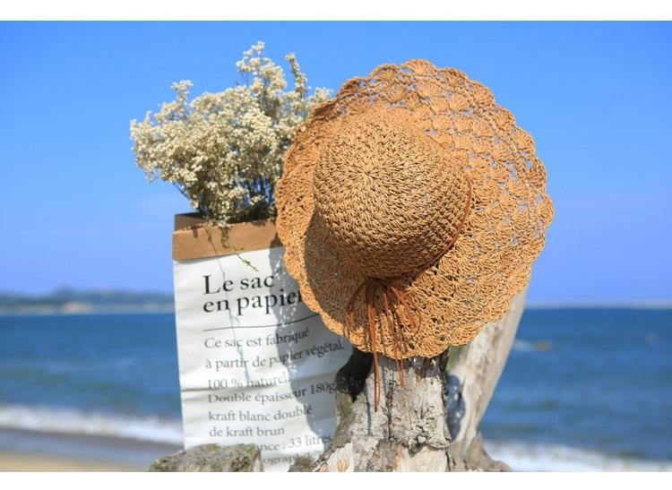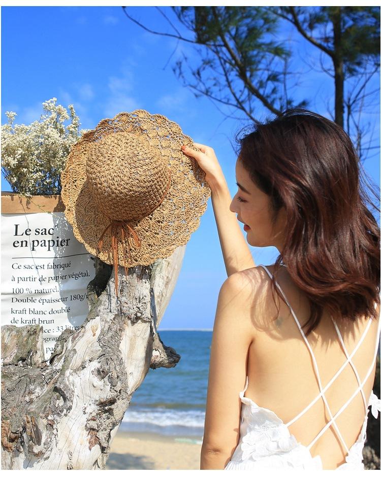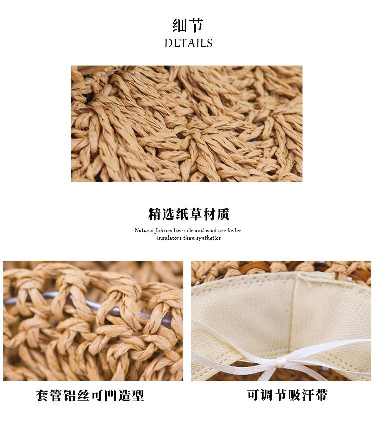 Sombrero de paja para mujer, estilo veraniego, pequeño, fresco, para playa, de ala grande, estilo Mori, protector solar, sombrero para el sol plegable tejido a mano.