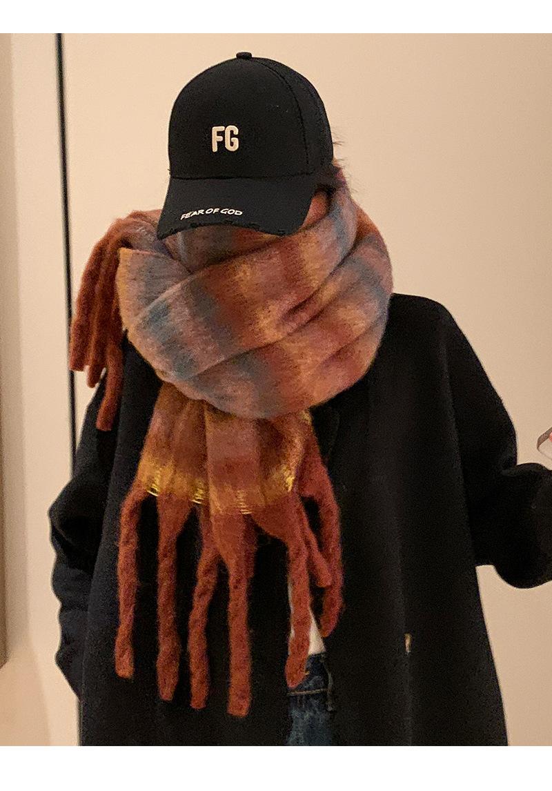 Bufanda de rayas de estilo coreano para niñas de invierno, bufanda cálida colorida cepillada de alta calidad, chal para parejas de estudiantes, de doble uso