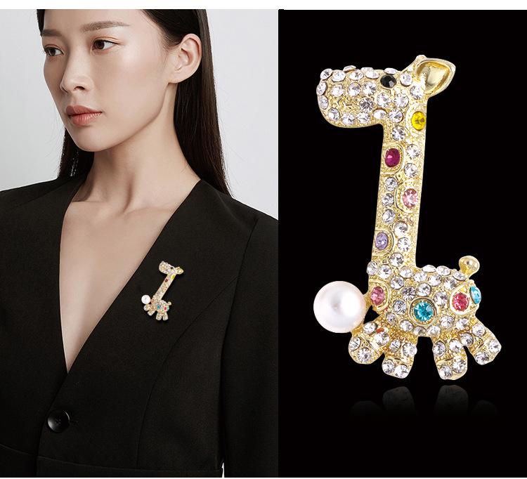 Broche coreano creativo Diamante Cristal lindo caricatura lindo jirafa animal ramillete pedrería perla pin