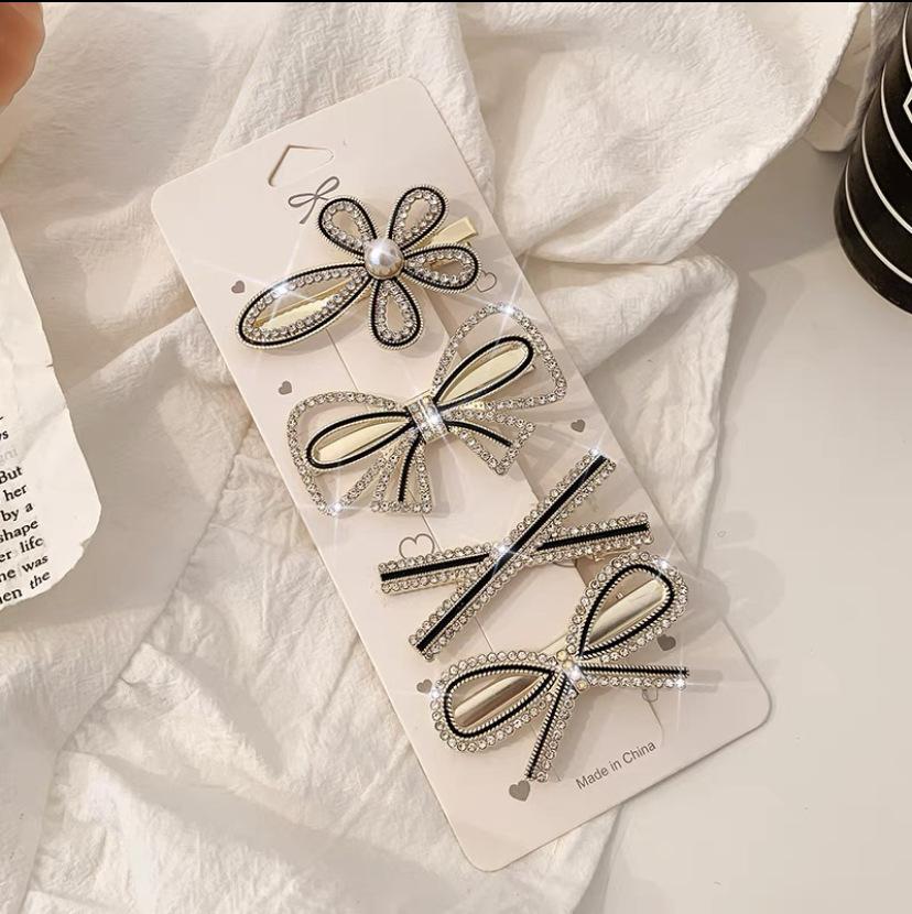 Set de 6 Pinzas para el Cabello Pluma de Oso Perla Diamante de Imitación Tijeras Pinza para el Cabello Estilo Coreano Ins Retro Clip para Flequillo Accesorio para el Cabello de Hada