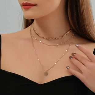 Collar de cadena multicapa de metal personalizado transfronterizo europeo y americano, collar de cadena de clavícula con disco geométrico retro de moda, venta al por mayor