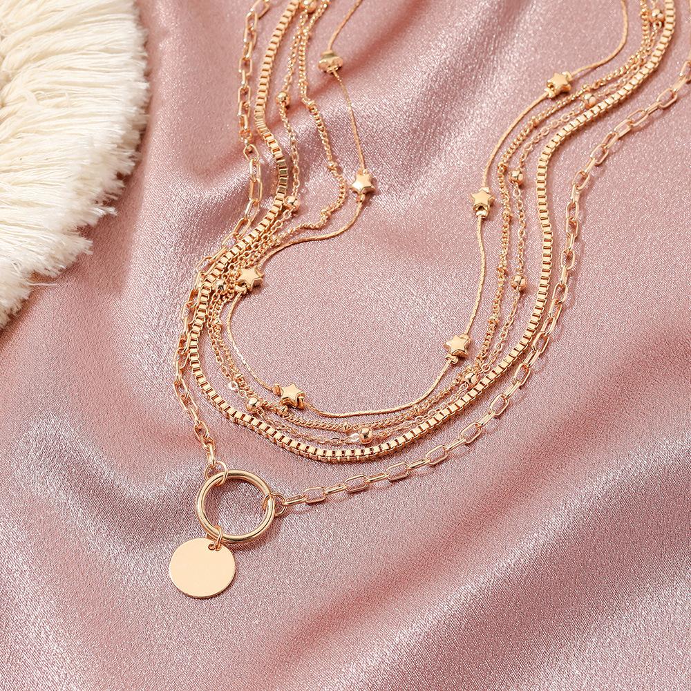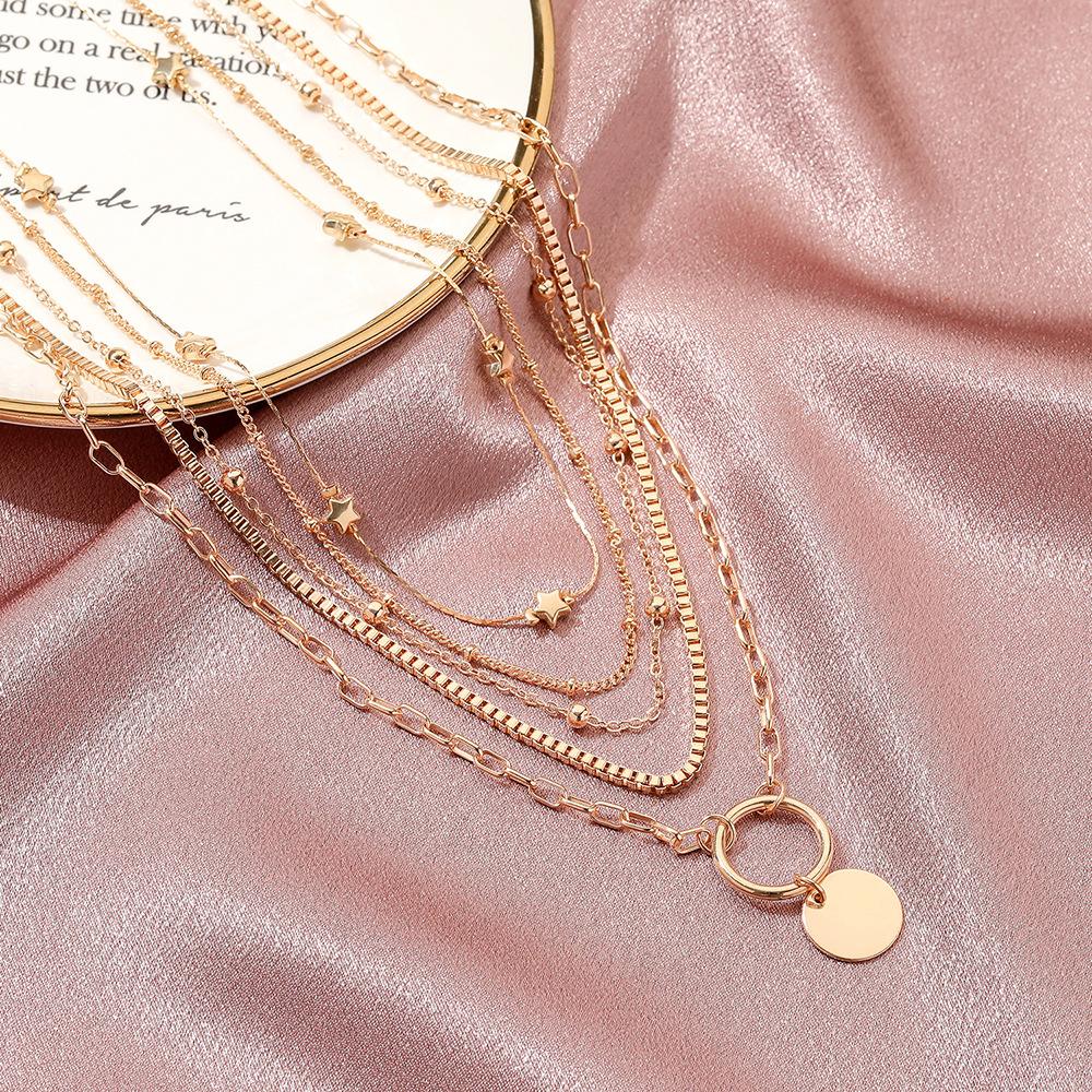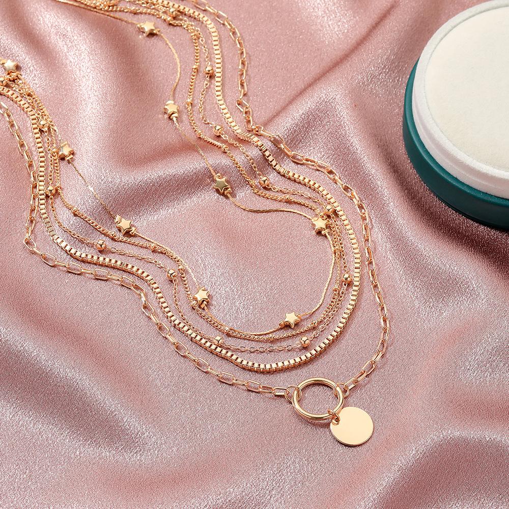 Moda Transfronteriza Collar de Disco con Cuentas de Cinco Capas Retro Personalizado Estrella Multicapa Cadena Clavicular Joyería para Mujer Venta al Por Mayor Exquisito