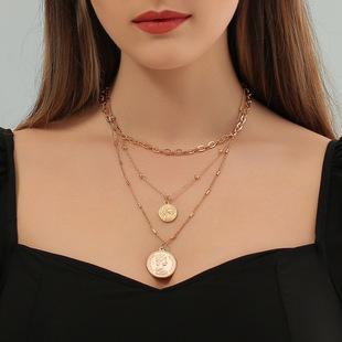 Conjunto de collar multicapa con retrato retro transfronterizo europeo y americano, collar de clavícula con moneda romana de metal retro de moda para mujer