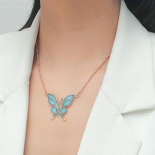 Nuevo collar con colgante de mariposa de diamantes de imitación transfronterizos, estilo hip-hop exagerado con personalidad europea y americana, joyería para mujer