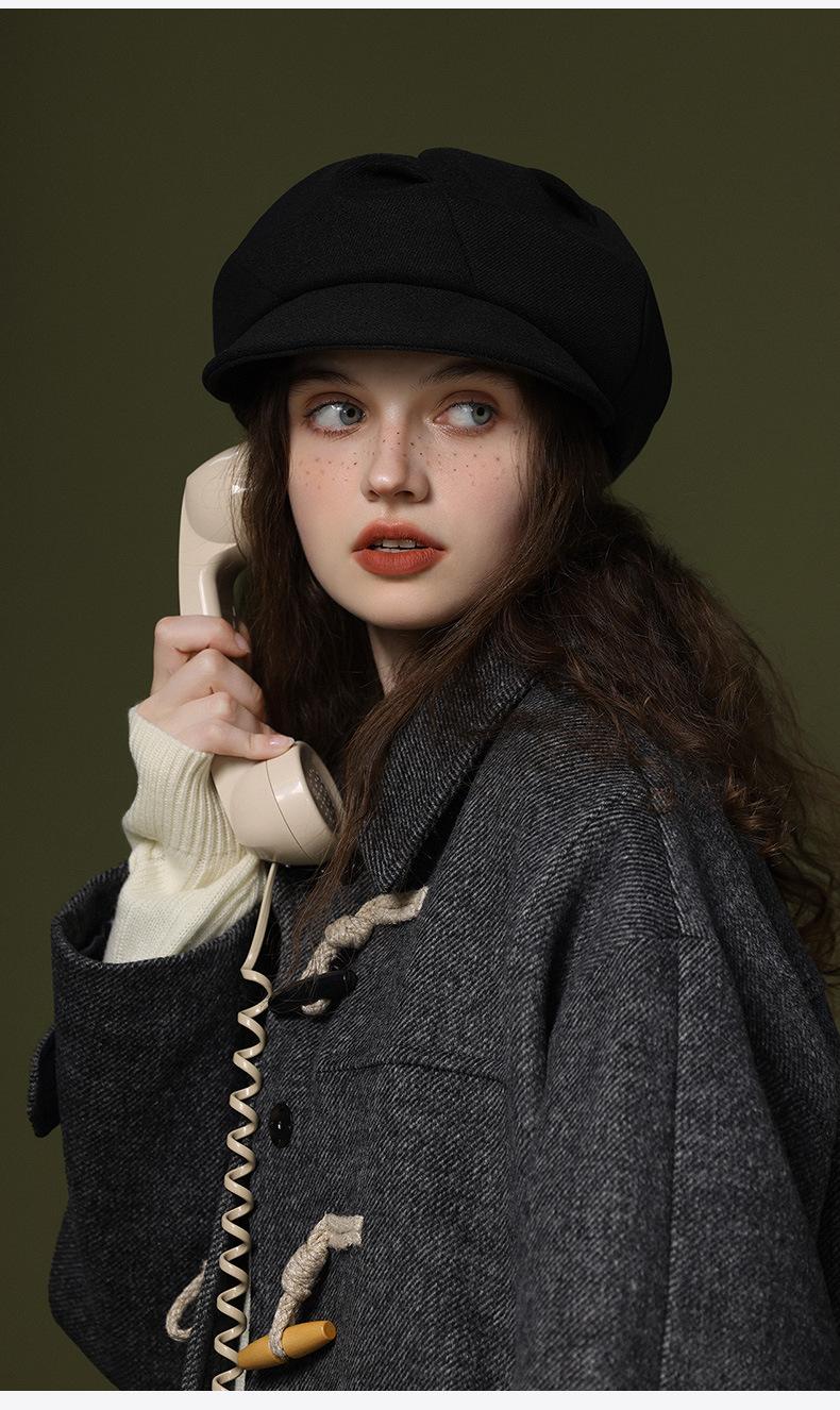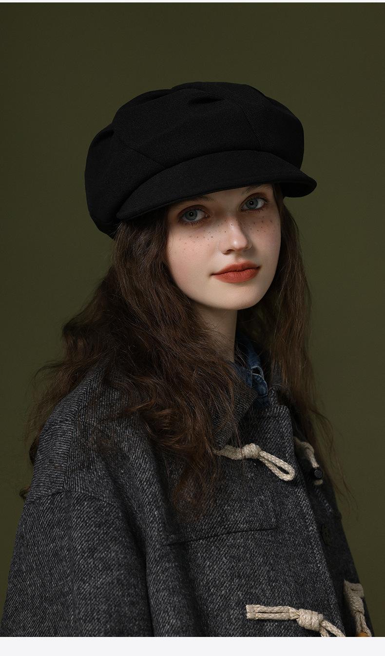 Boina de lana de color sólido con gorro de pintor artístico elegante y retro para hombre y mujer, estilo coreano, boina versátil para otoño e invierno.