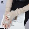 Guantes de cachemira tejidos nuevos para otoño e invierno, guantes largos y cálidos con dedos abiertos para mujer, protección para la muñeca, manga de medio dedo para el brazo.