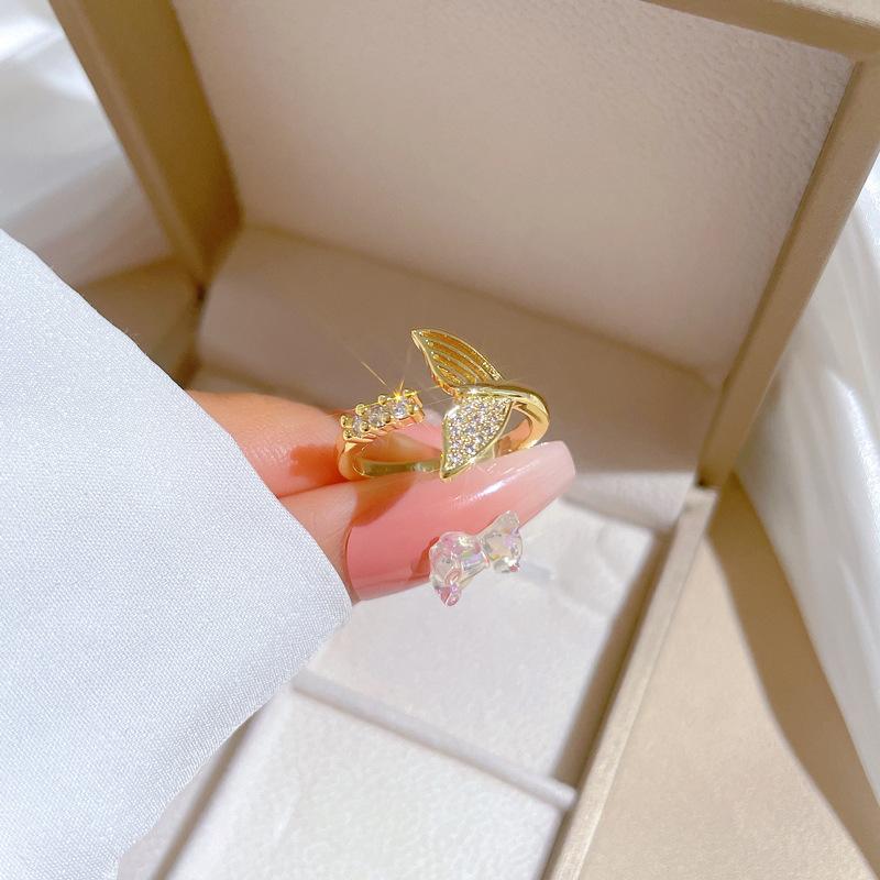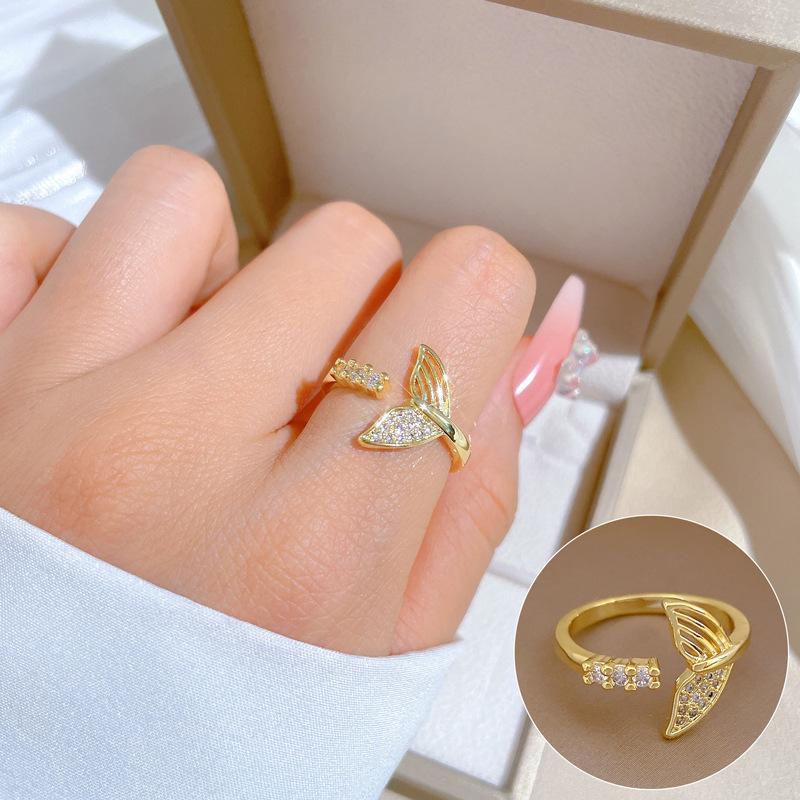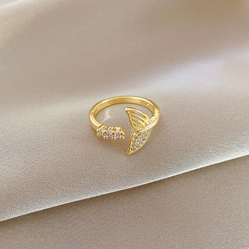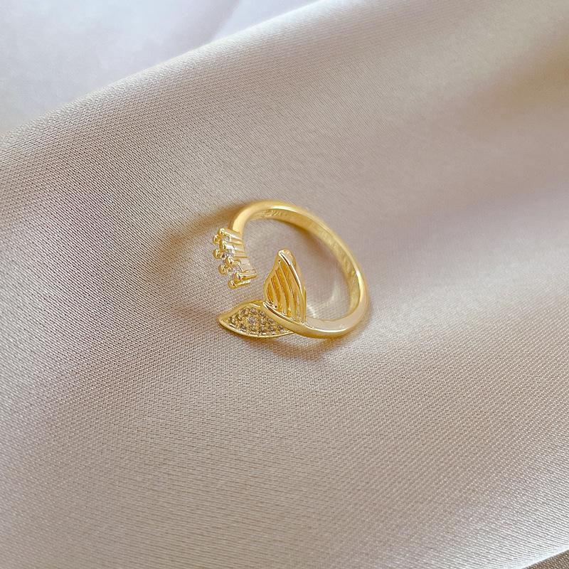 [Oro Verdadero] Anillo de Boda Calado Cola de Pez Anillo con Abertura Ajustable Simple Anillo Japonés Anillo para Pareja