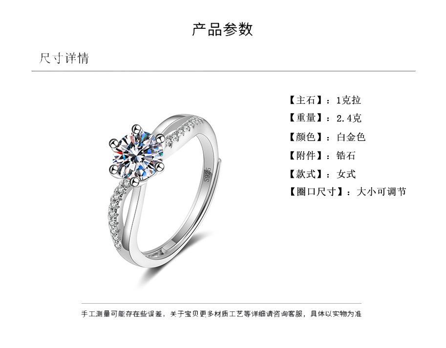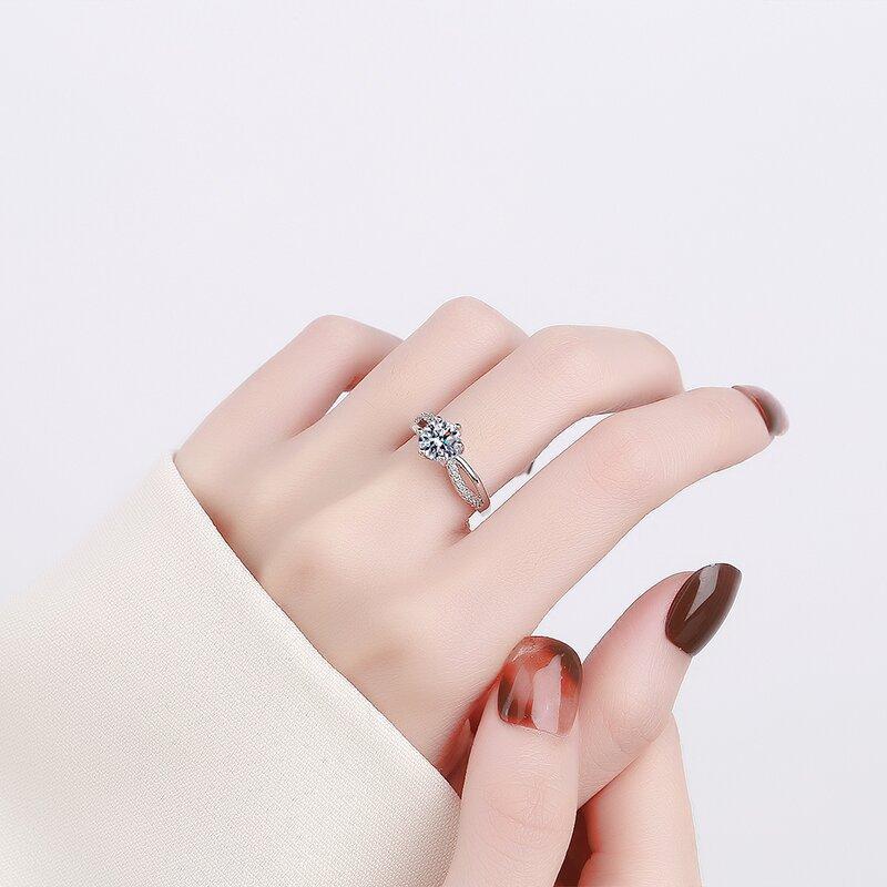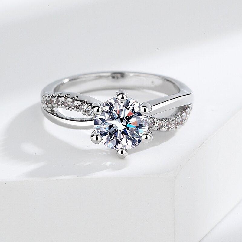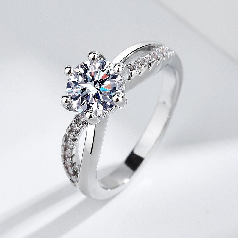 Sacude el sonido del nuevo anillo de amor entrelazado de 1 quilate de la moda coreana para damas, anillo de diamantes de moissanita de seis garras, outlet de fábrica