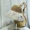 Sombrero de paja con encaje estilo japonés para mujer, de ala grande, para verano, viajes, vacaciones en la playa, sombrero de paja para el sol, sombrero de playa con protección solar.