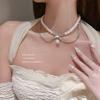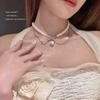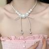 2024 Nuevo Collar de Perlas con Lazo de Diamantes Flash para Mujer Diseño con Sentido Estilo Frío Gargantilla Cadena Clavicular