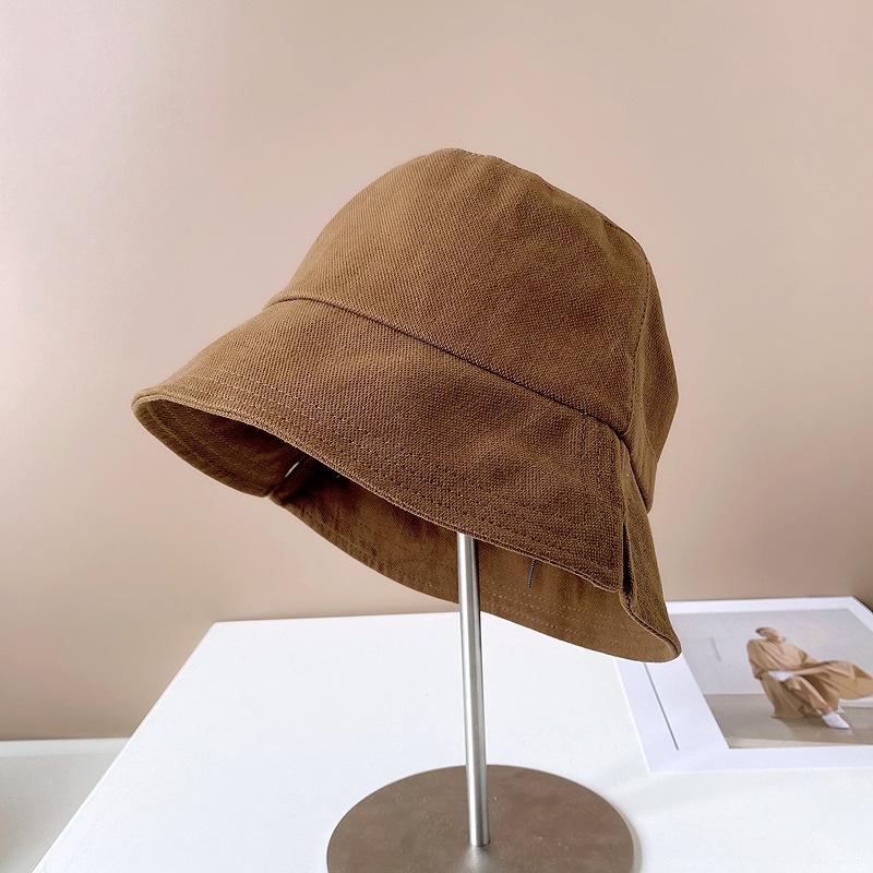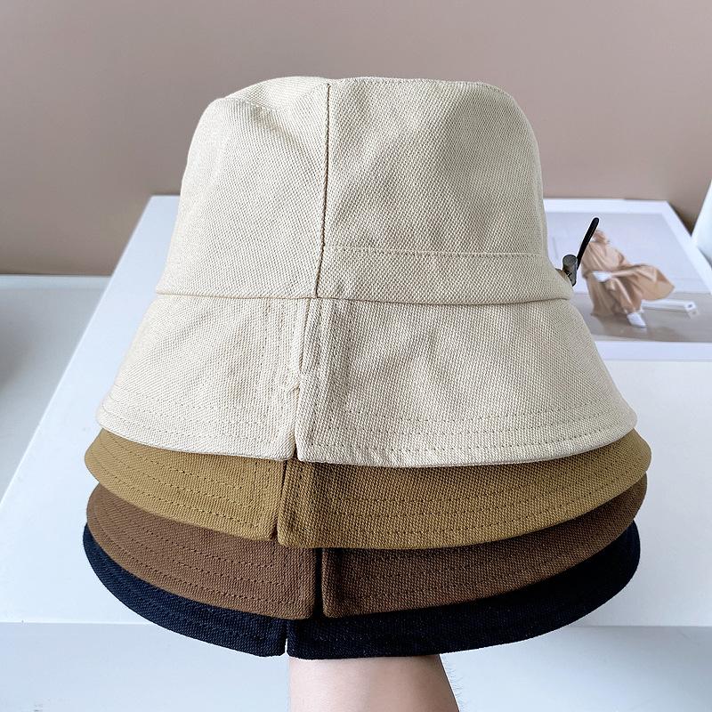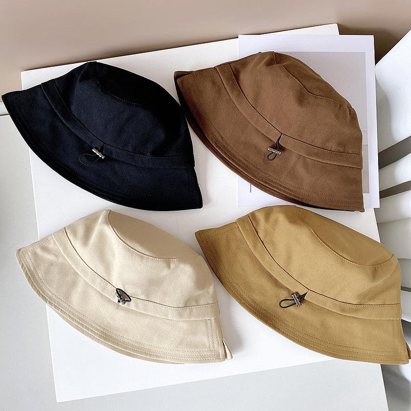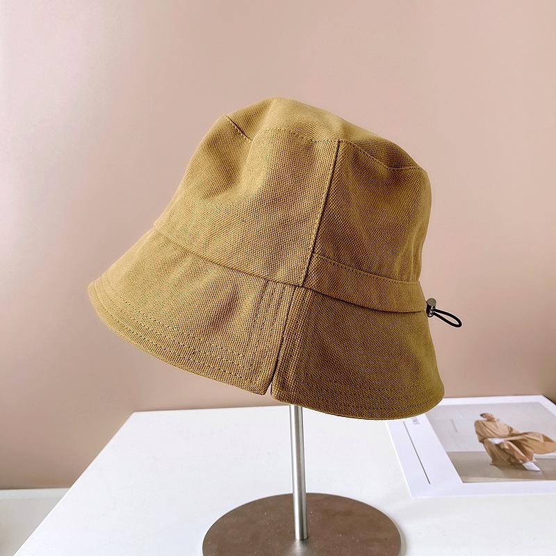 Sombrero de pescador de alta calidad para mujer, sombrero de cubo con cordón ajustable, sencillo y combinable, estilo japonés, color sólido, para el sol, estilo celebridad de Internet.